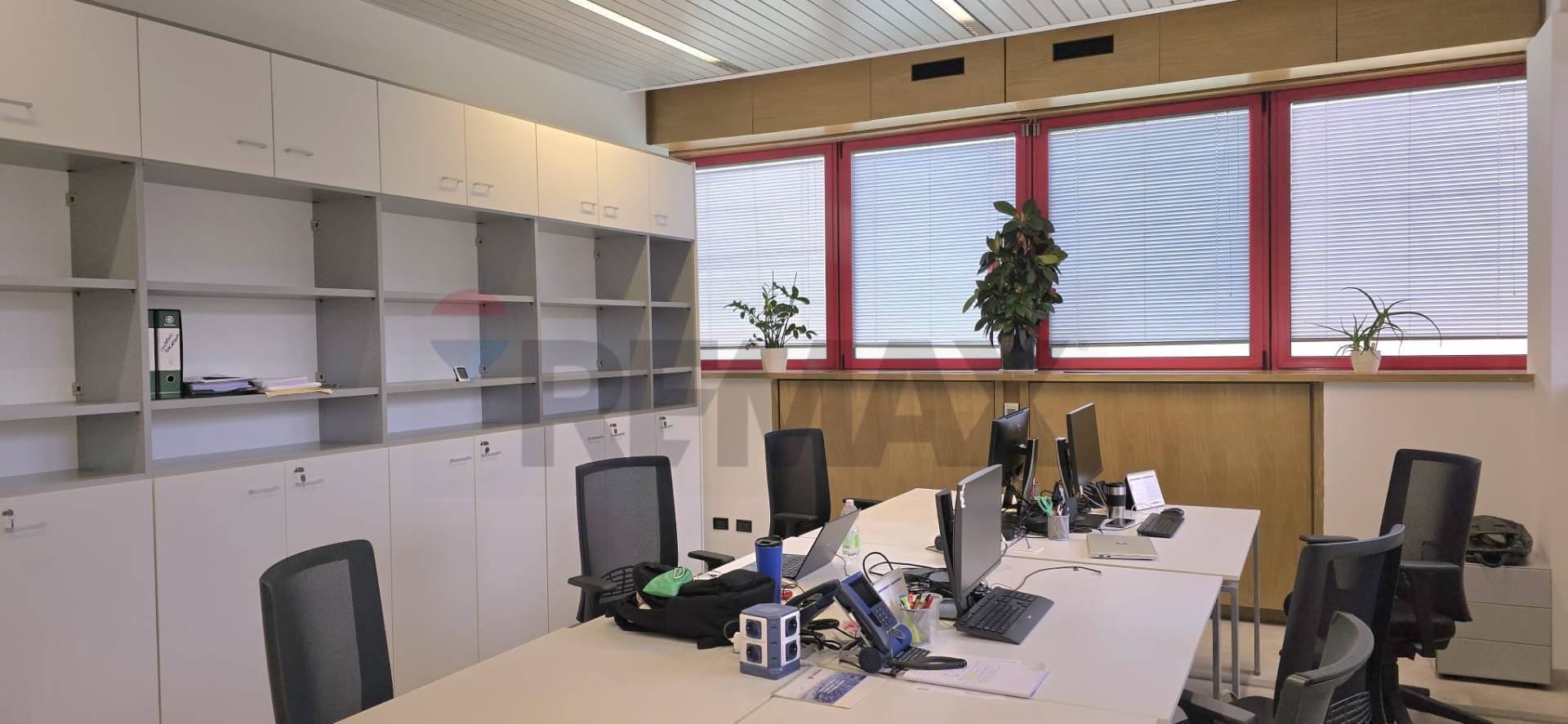 - Un ampio open space, caratterizzato da grandi vetrate a nastro che proseguono sui due lati consecutivi inondando l'ambiente di luce naturale e creando un'atmosfera luminosa e accogliente.