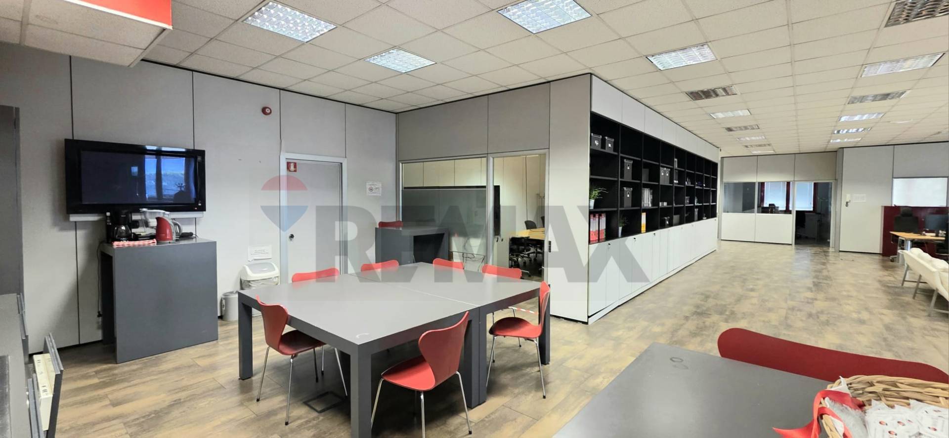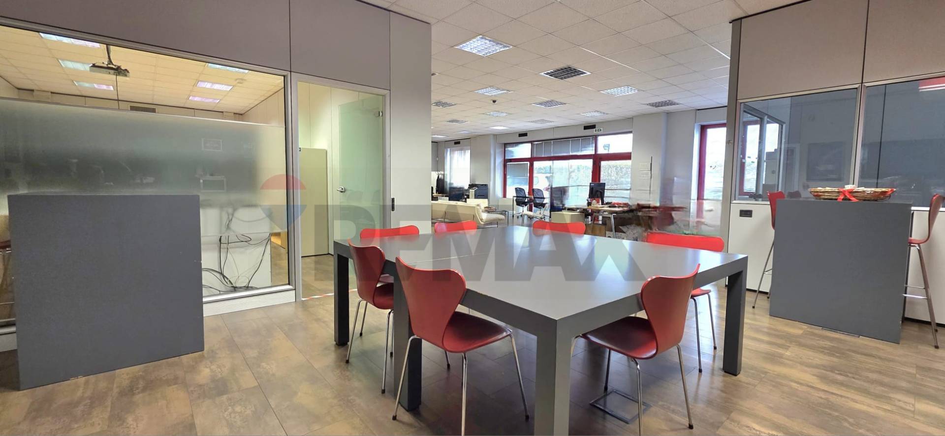 Dispone di quattro uffici privati, una sala riunioni ben separata e una zona dedicata ai pranzi o a incontri informali, il tutto collegato in modo armonioso all'open space.