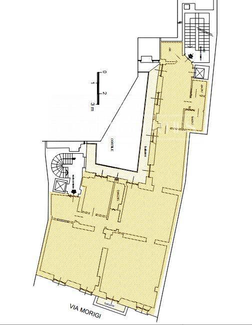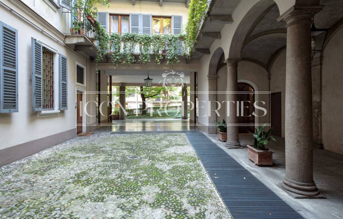 Via Morigi, ledificio a corte sorge su un antico portico colonnato con volte affrescate risalenti al 1700, le coperture sono in coppi stile vecchia Milano e si compone di quattro piani fuori terra e un piano interrato.