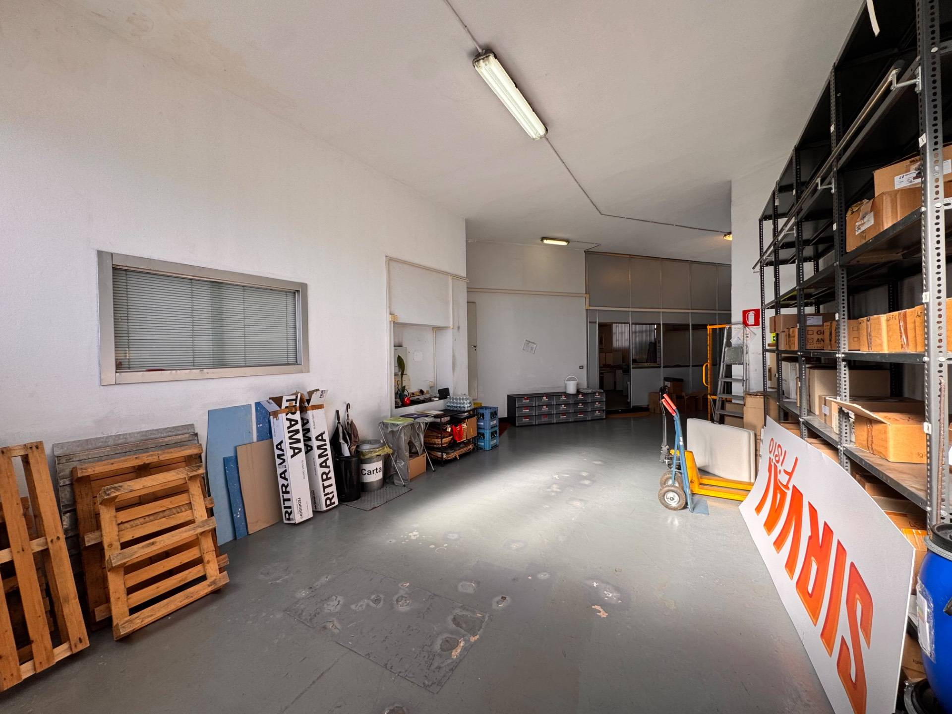 Ideale per attivit di deposito, logistica o uso artigianale/ show-room, oltre ad ufficio di due locali e servizi al piano rialzato.