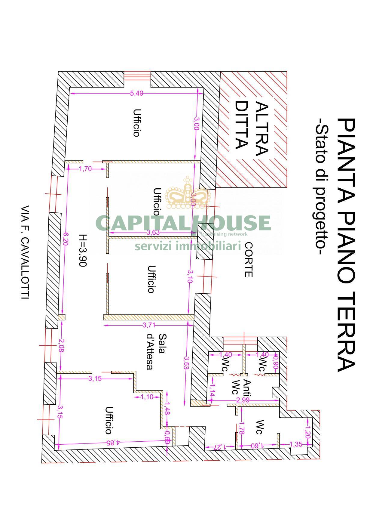 L'immobile si trova all'inizio di Via Cavallotti, adiacente a Via Terracciano, e offre una posizione comoda per professionisti e aziende.