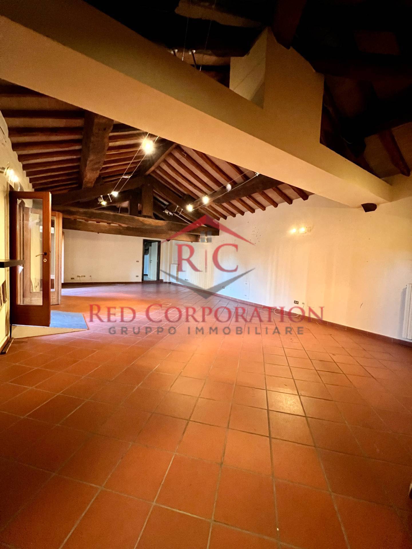 Ingresso su ampio open-space con travi a vista, ulteriore vano separato, antibagno e bagno, ottimo per essere utilizzato come studio professionale.