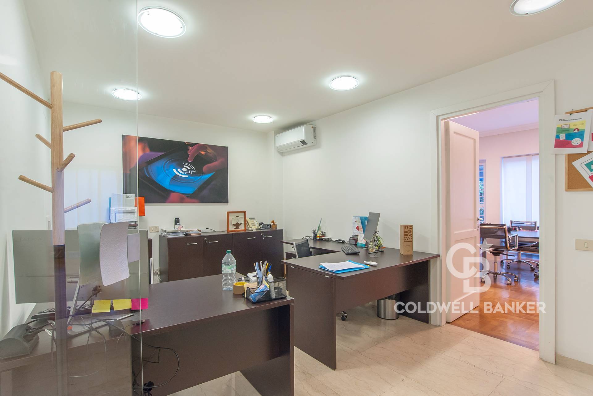 ***.*******.** Nel quartiere Pinciano, in posizione strategica e facilmente raggiungibile, nelle immediate vicinanze di Piazza Verdi, Via Giovanni Paisiello, Via Mercadante e Villa Borghese, la Coldwell Banker lieta di proporre un elegante ufficio di rappresentanza disposto su due livelli di complessivi mq 265 e prospiciente un gradevole giardino di propriet esclusiva di circa mq 150 con ingresso indipendente e secondo ingresso condominiale.