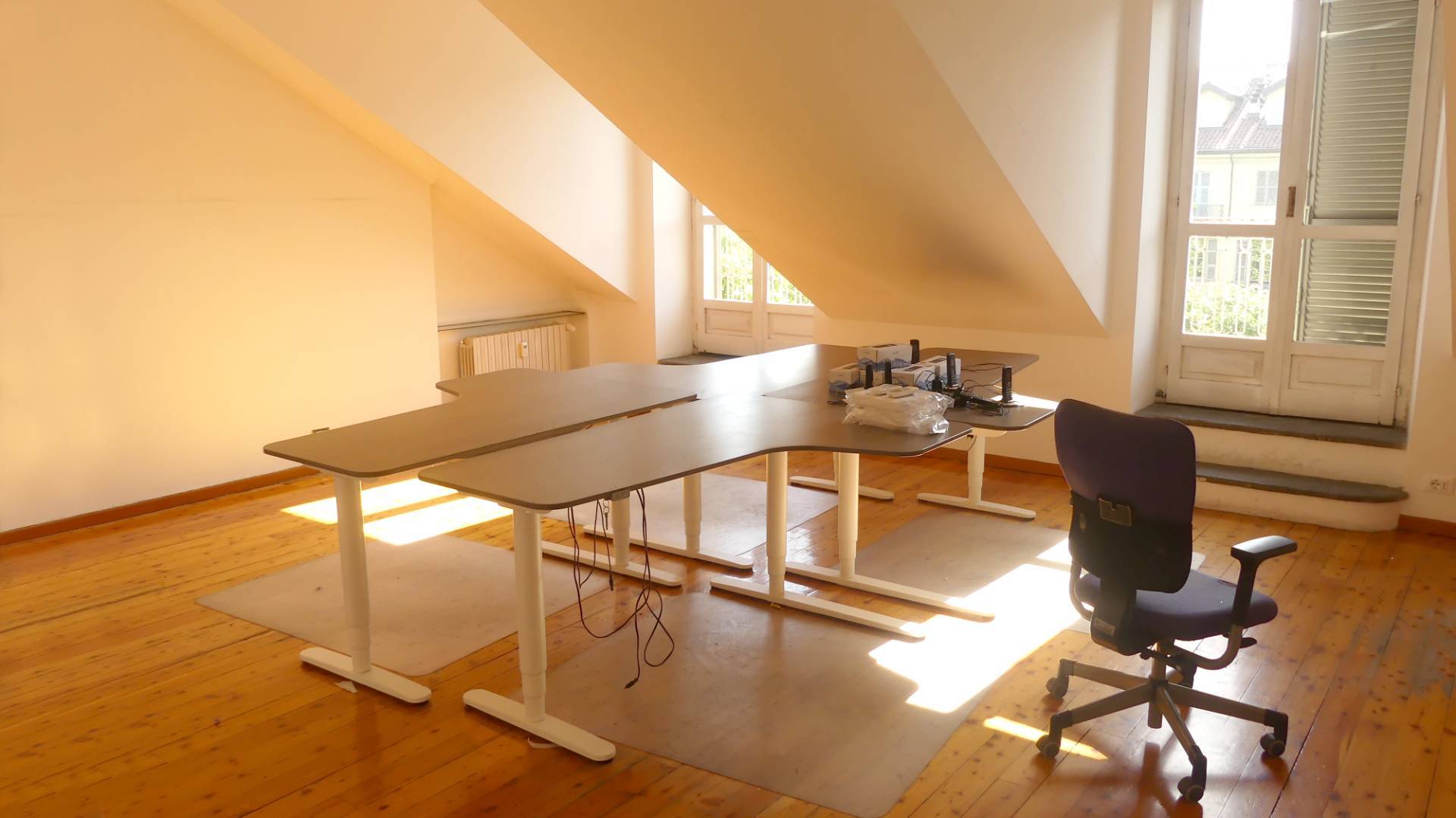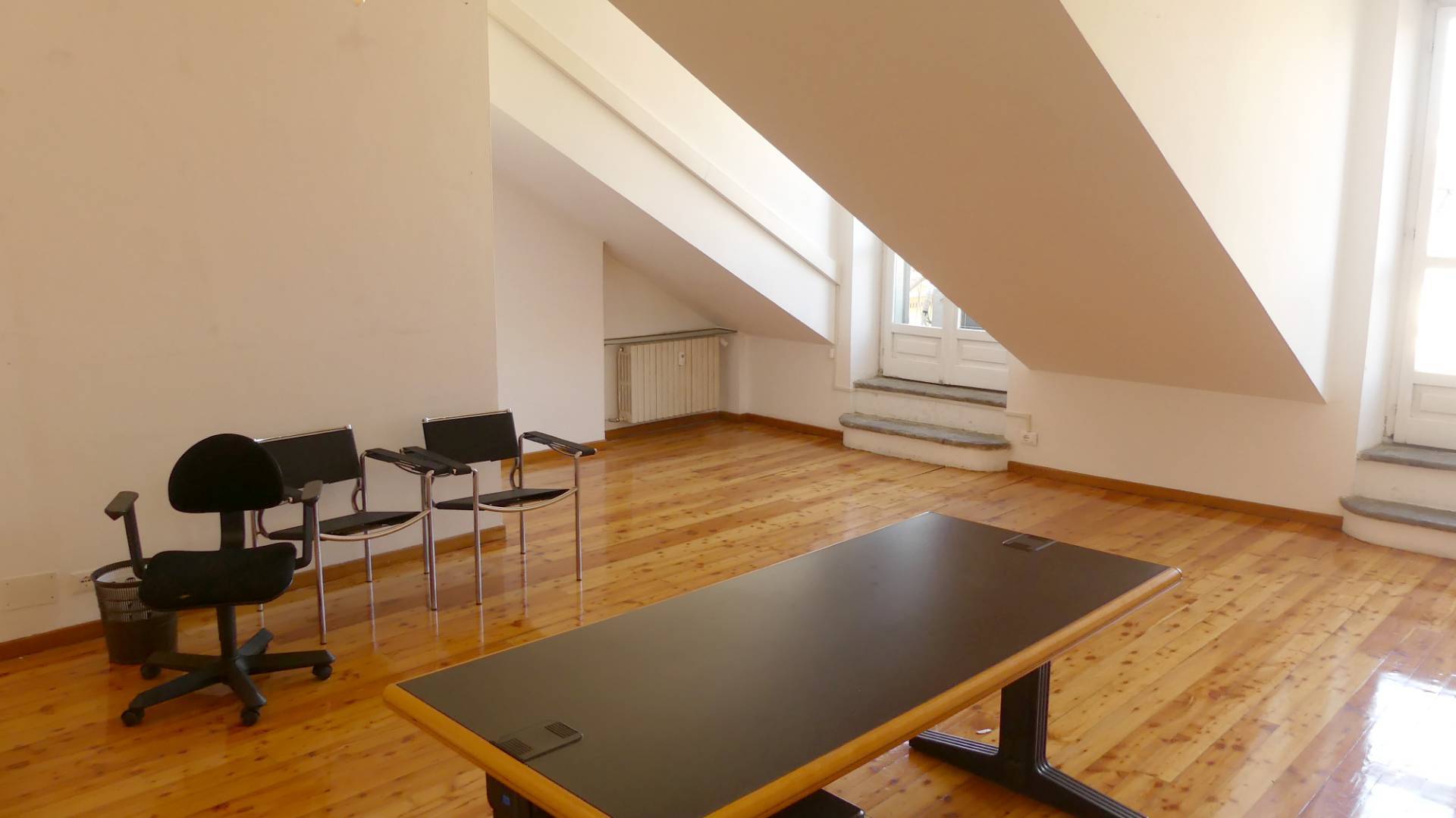 In palazzo d'epoca con portineria ed ascensore, proponiamo ufficio al quarto ed ultimo piano, mansardato alto, di circa 100 mq. L'immobile composto da ingresso su sala d'attesa, due grandi stanze e un bagno.