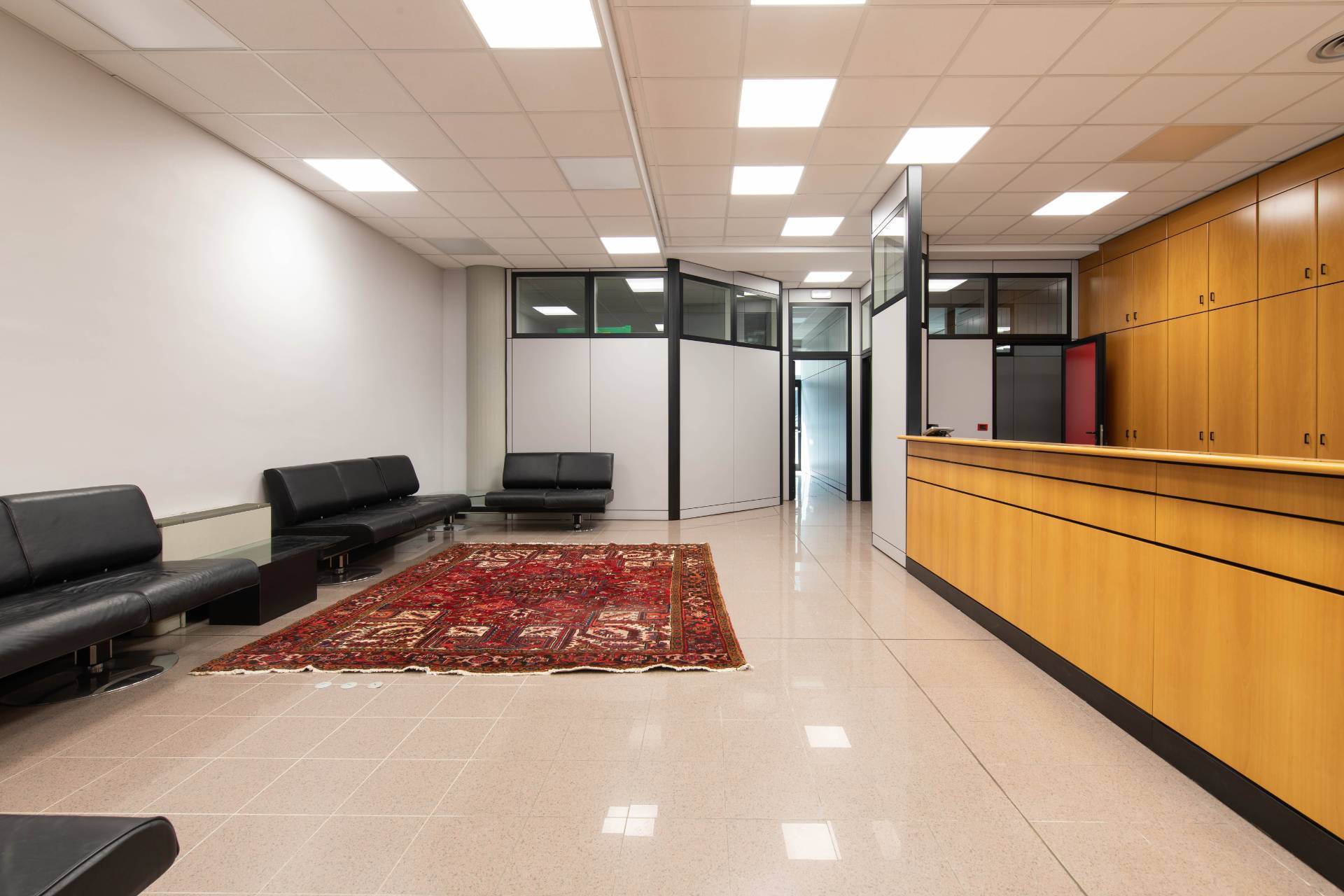 Splendido ufficio con ottime finiture e corredato di scrivanie e pareti attrezzate, al secondo piano servito da ascensore e montacarichi.