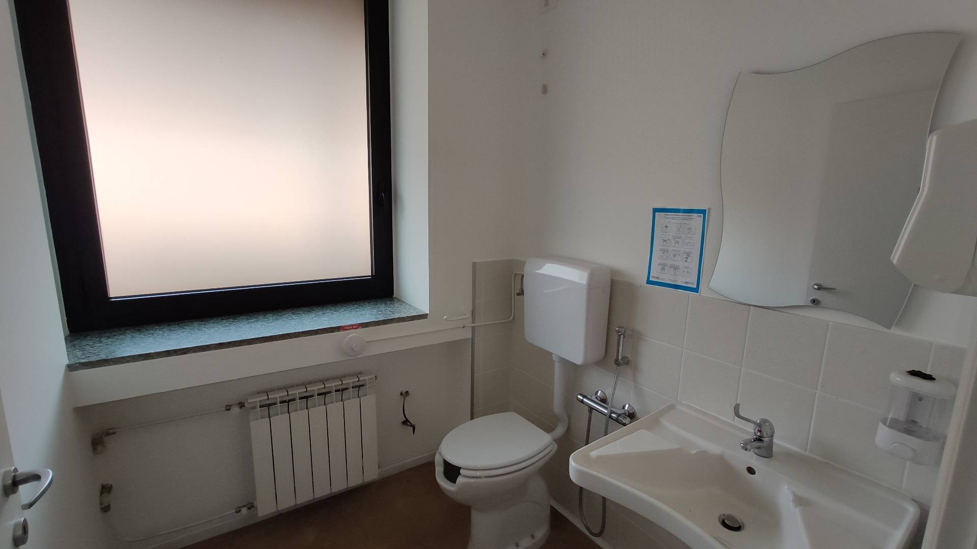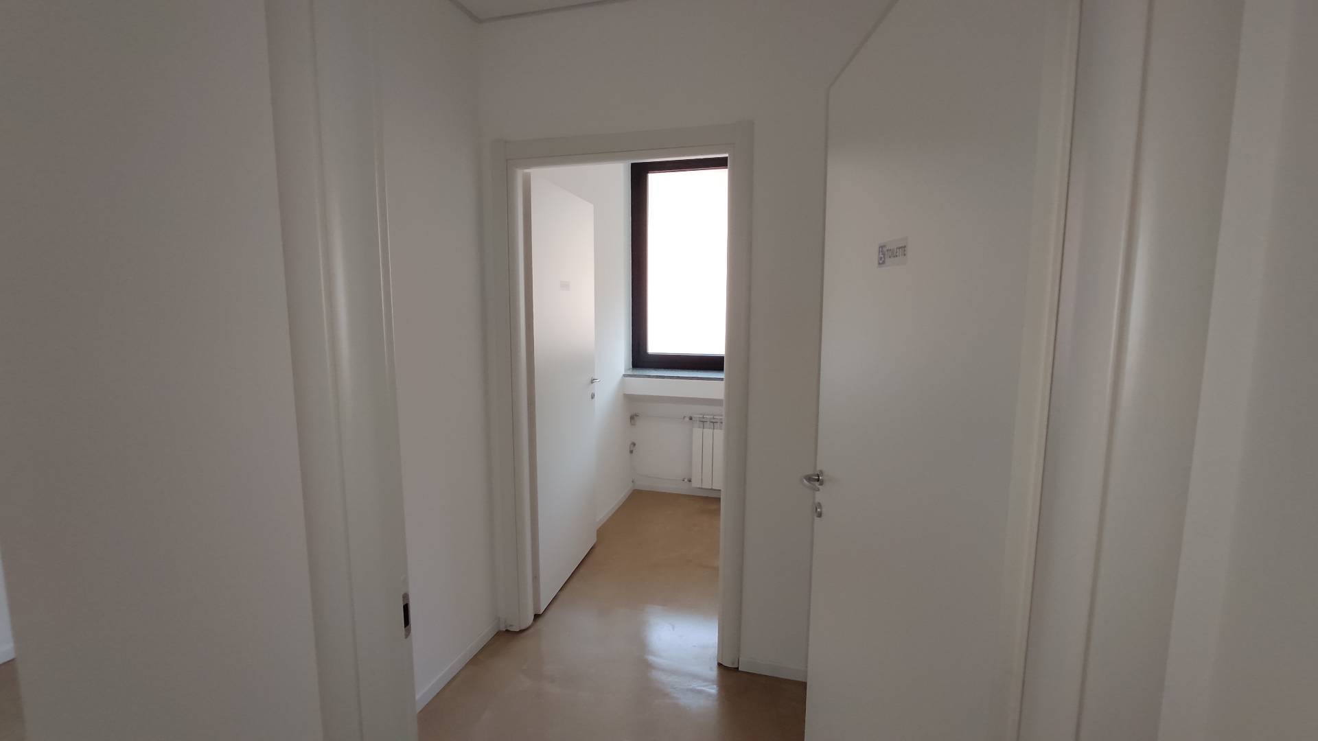 E' composto da ingresso in ampia zona reception con sala d'attesa, 3 ampi uffici, zona archivio, sala riunioni, doppi servizi di cui uno dei quali attrezzato per disabili e locale coffee break.