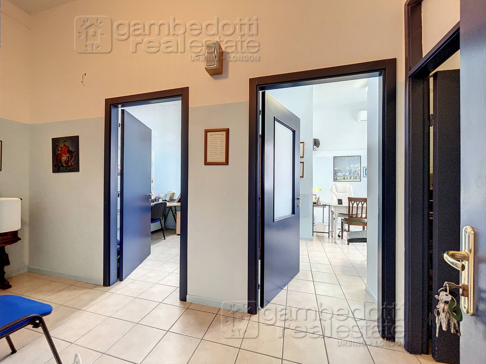 In Affitto ad Urbino, pratico ufficio commerciale con posto auto riservato ed ampio parcheggio per clienti.