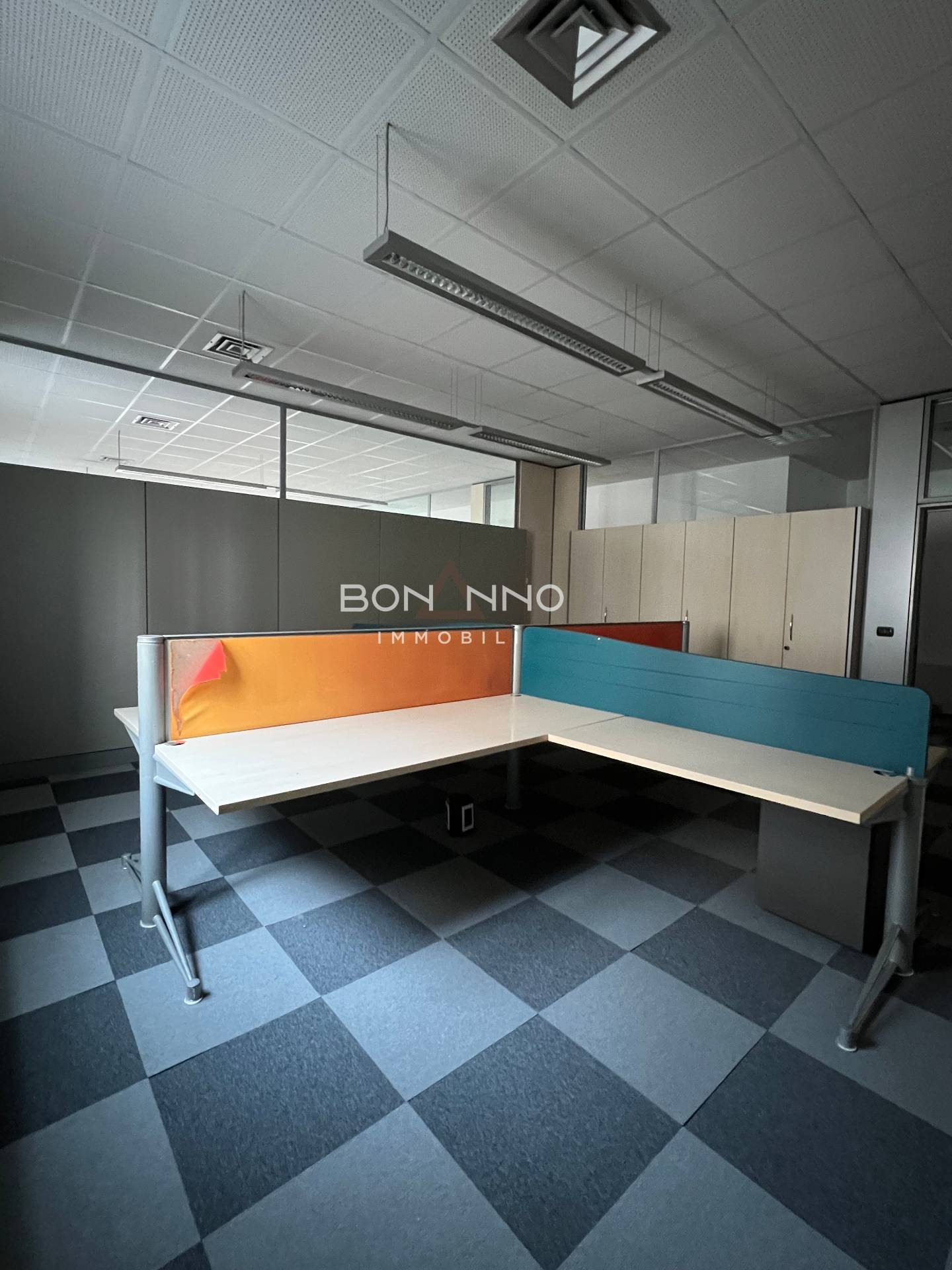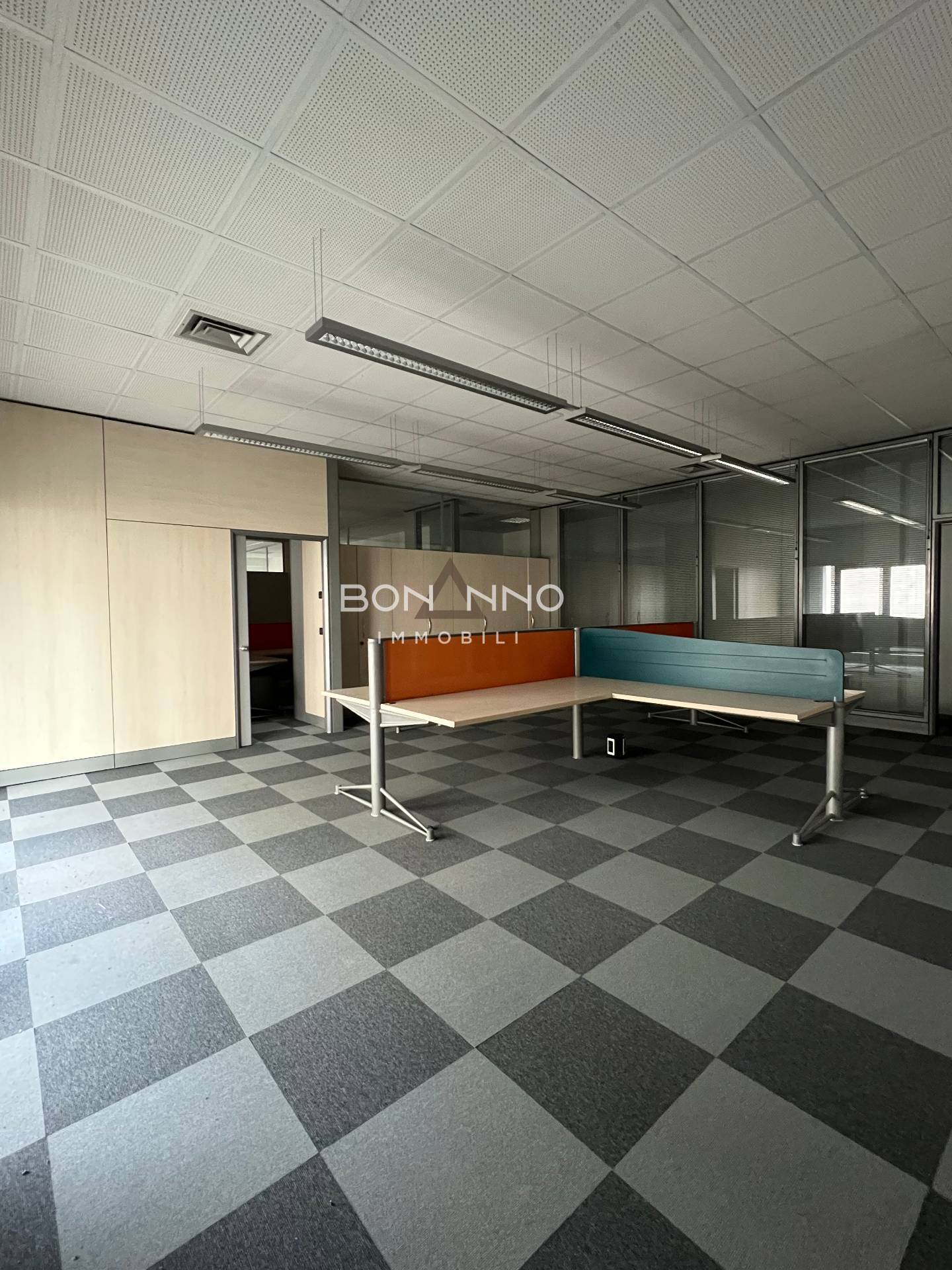 L'ufficio di 200 mq diviso tramite mobilio e sono stati ricavati anche due uffici interni tramite vetrate classiche degli uffici direzionali bancari.