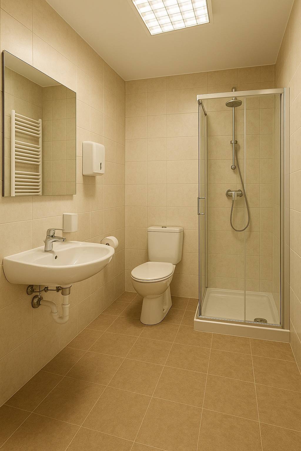 La soluzione si compone di tre vani ufficio, un ingresso accogliente, oltre a due servizi moderni.