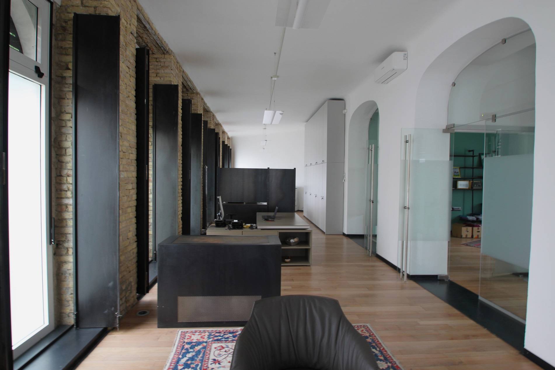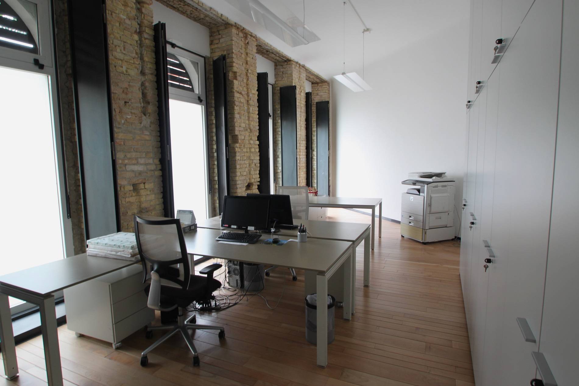 In posizione centrale ed ottimamente servita, in palazzo storico ristrutturato, proponiamo elegante ufficio al piano terra composto da ingresso con reception e zona dattesa, sala riunioni, stanza archivio, ampio ambiente con 3 postazioni lavoro, oltre a ripostigli, servizio e locali tecnici con accesso esterno.
