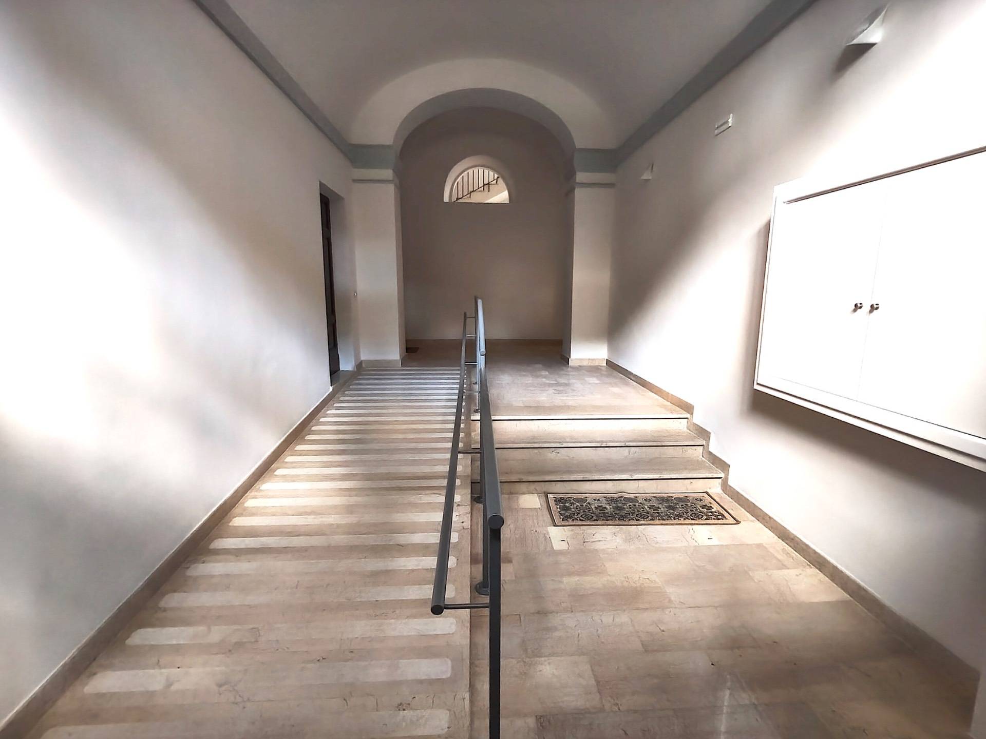 Lo spazio, situato al piano rialzato, stato ristrutturato mantenendo intatto il carattere storico dell'immobile, evidenziato da soffitti alti 4 metri con ampie volte a crociera e pavimenti originali in graniglia.
