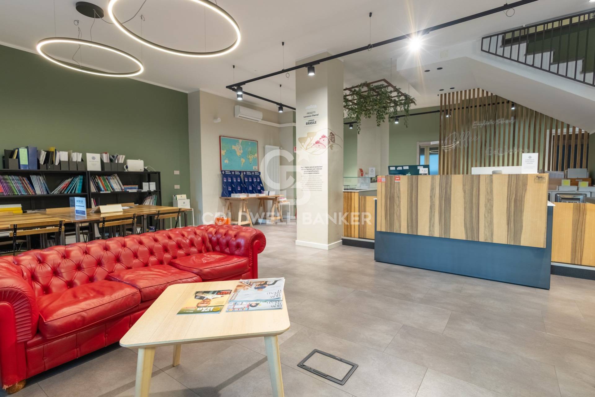 Al piano rialzato, con doppio accesso sia direttamente dalla strada con ingresso indipendente e sia dal pianerottolo condominiale, si apre una grande hall di ingresso con reception e zona attesa, un piacevole angolo bar o area relax, due uffici e un ampio bagno.