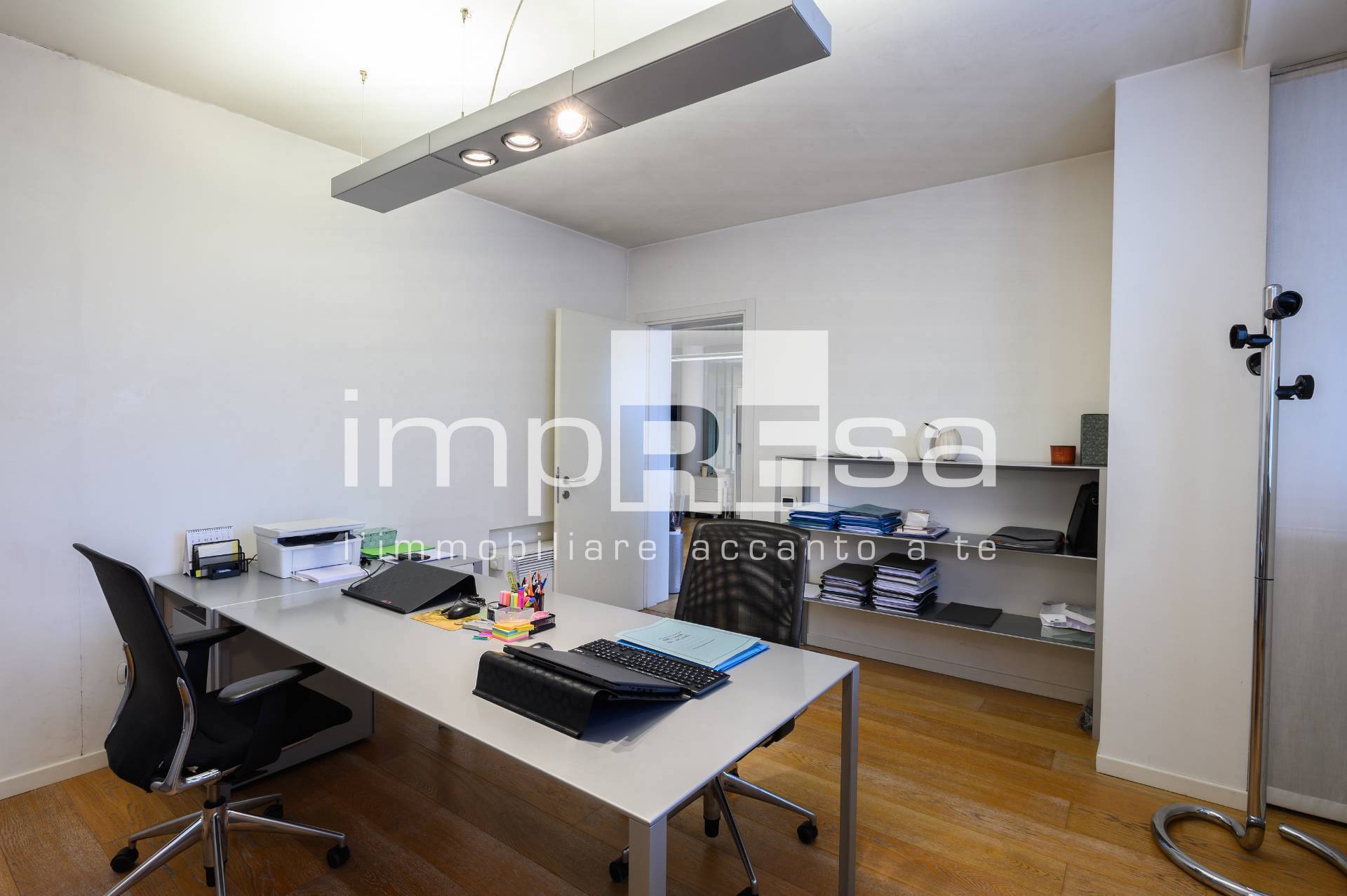 Gli spazi interni sono attualmente divisi in pi zone di lavoro con pareti amovibili; Dispone di un garage di oltre 30 mq al piano interrato.