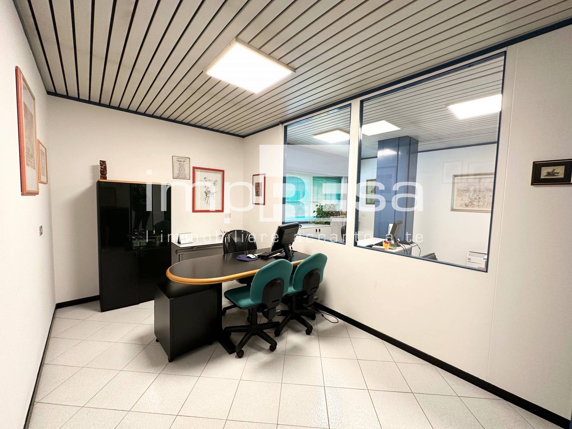 Mq. 130 netti gi suddivisi in 3 postazioni, una grande sala riunioni pi archivio, bagno pi antibagno e ingresso - sala attesa.