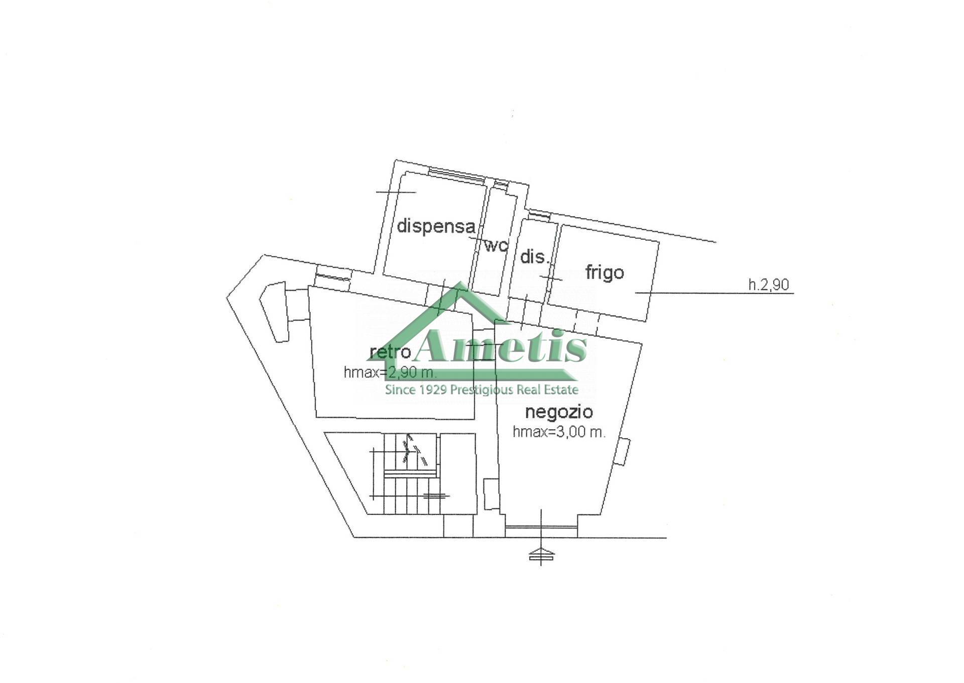 Si tratta di un piccolo negozio adibito a macelleria con disimpegno e cella frigo con unica finestra nel disimpegno ed un retro adibito a lavorazione che d accesso ad altra unit catastale composta di una vano dispensa e WC comunicanti tra loro, con altezze varie di ml. 2,90 e di 3,00 metri.