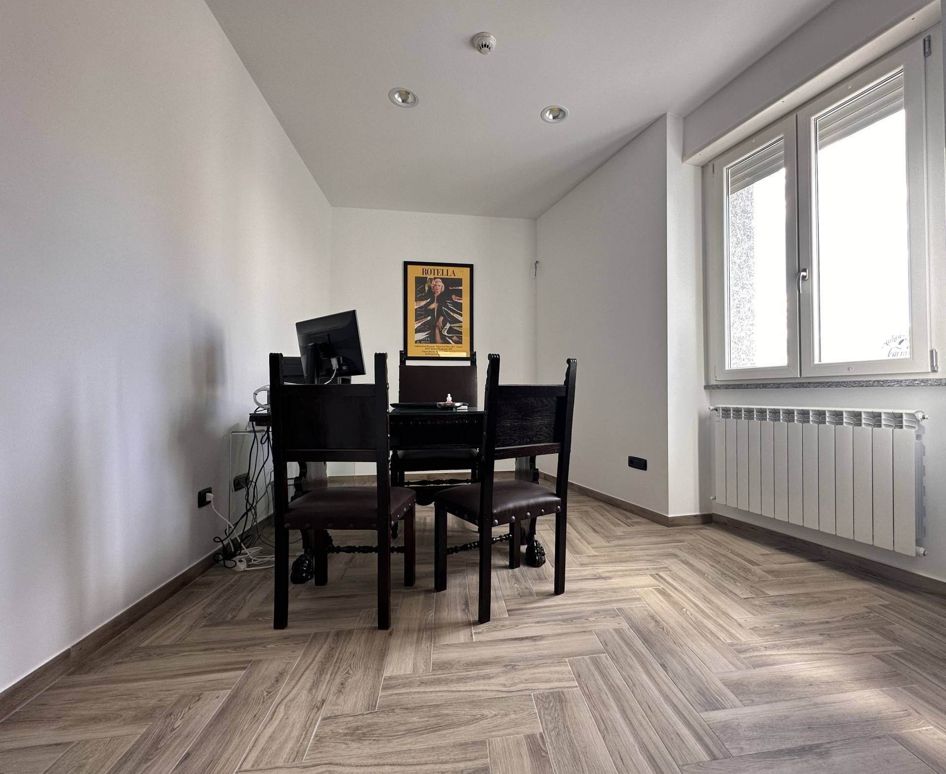 All'interno cos disposto: ingresso, saletta d'attesa, tre vani studio, doppi servizi con doccia e ripostiglio.