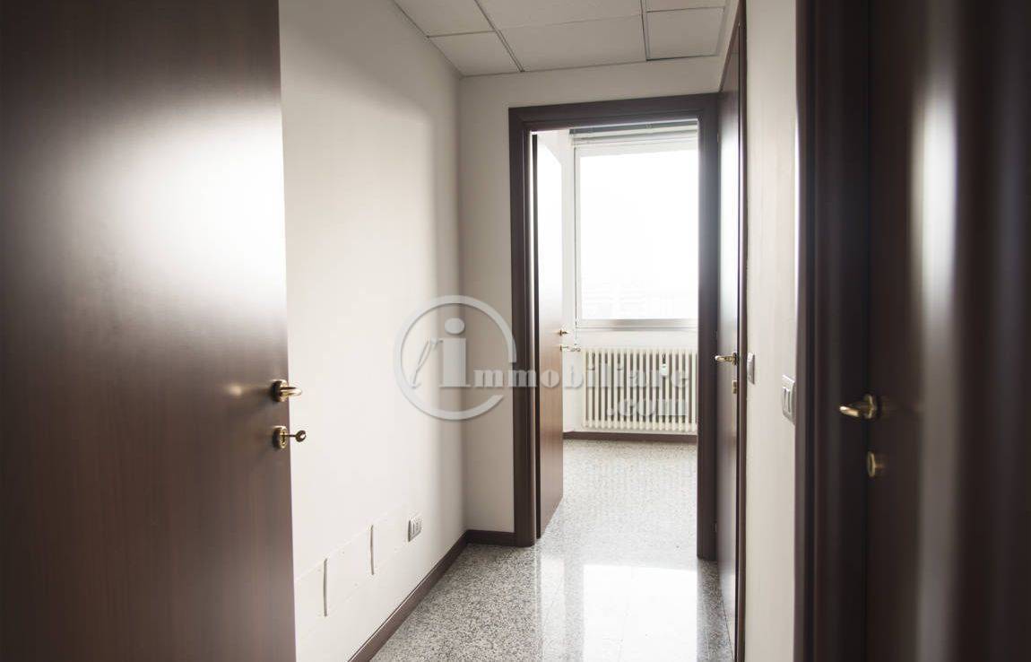 Lufficio, posto al quinto piano, si compone di quattro locali, doppi servizi e balcone.