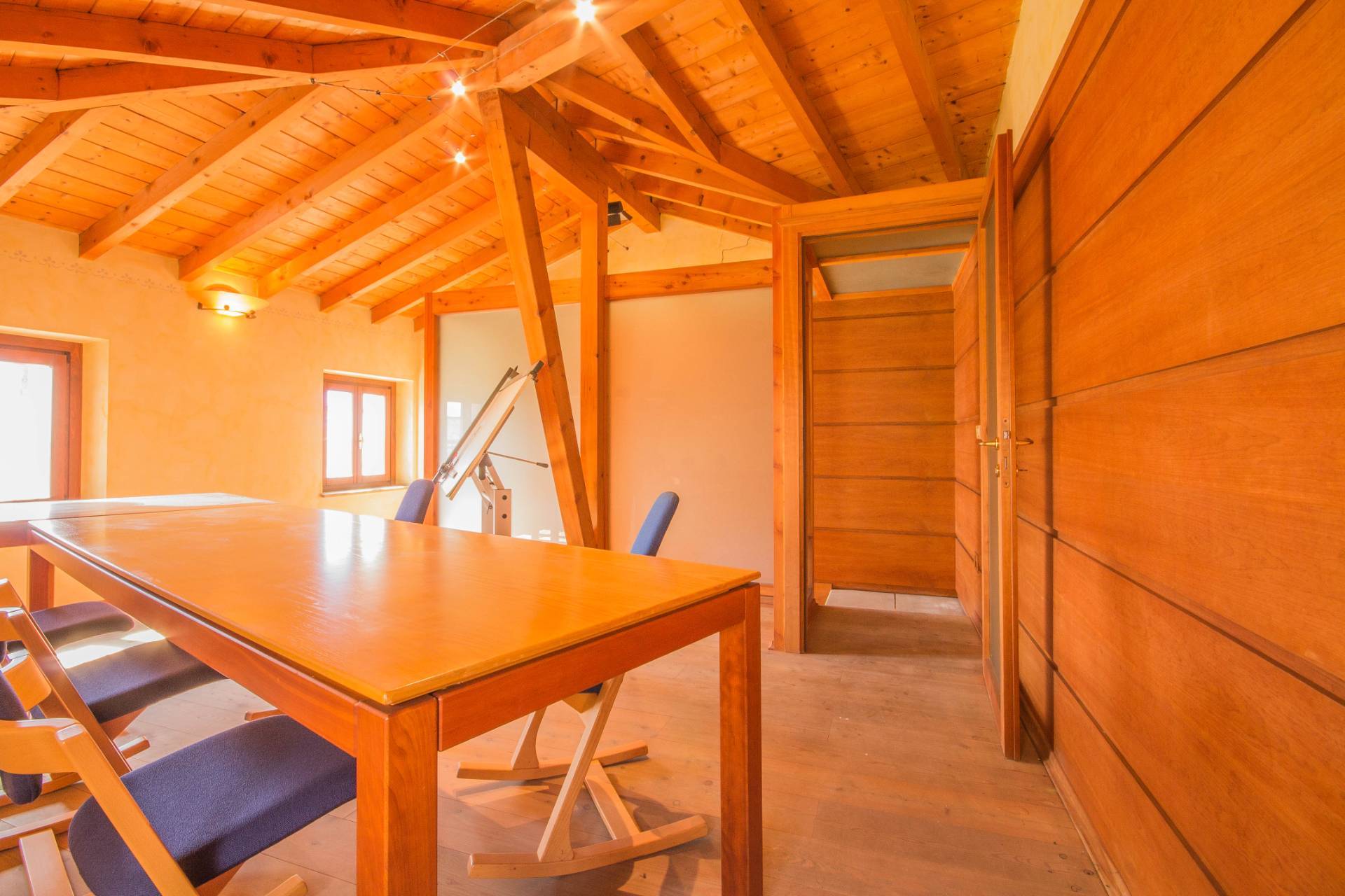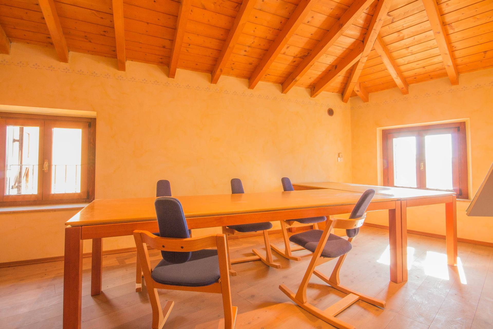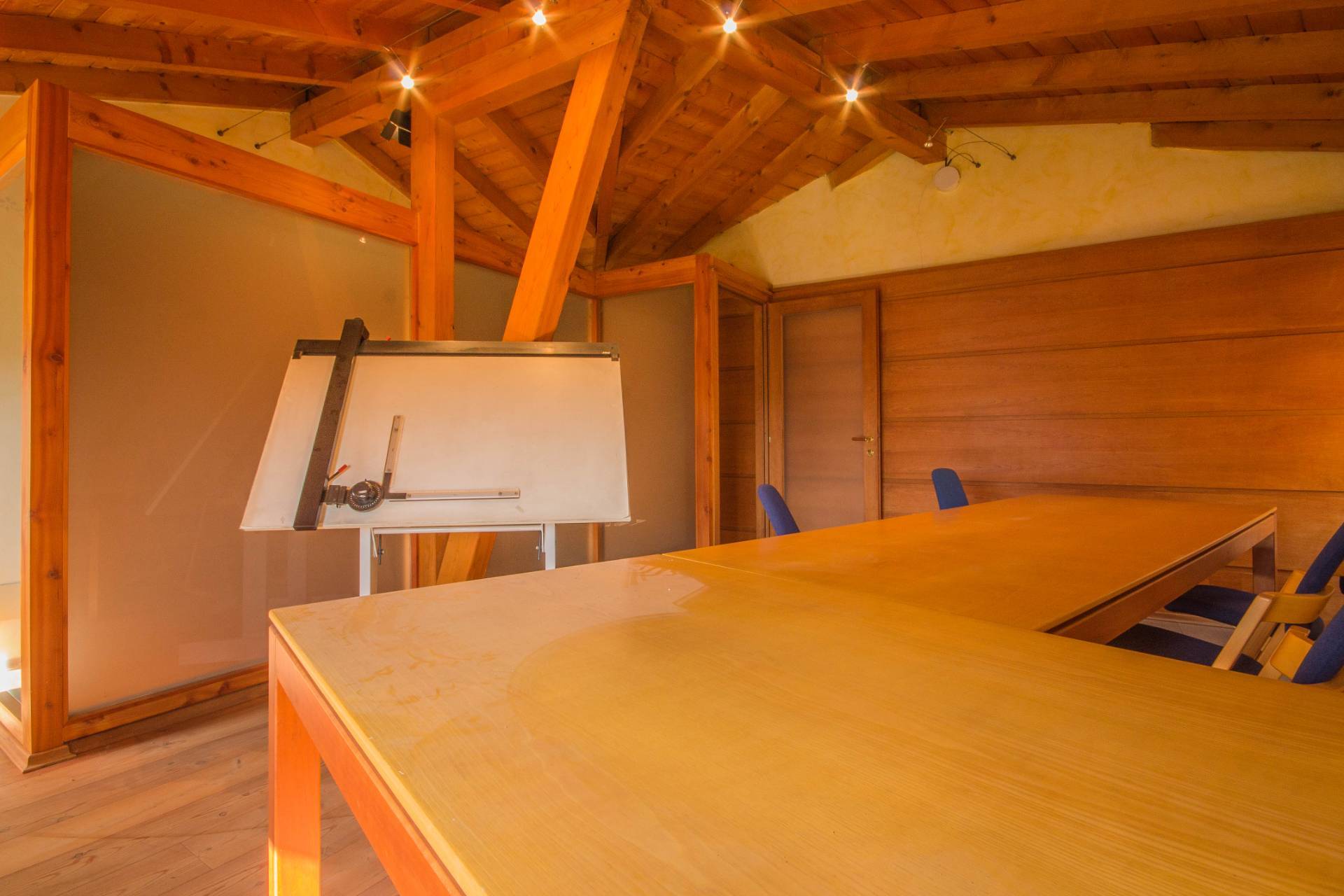 Scrivania in ufficio completamente arredato, in centro paese, con ottime finiture; Ufficio privato al piano secondo di 16 mq. Aree comuni: reception e bagno situati al piano terra; cantina (62 mq) al piano seminterrato.