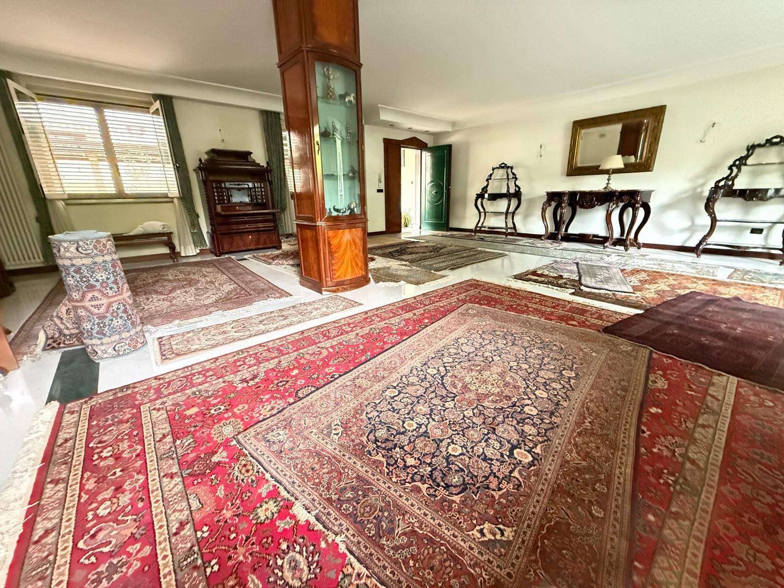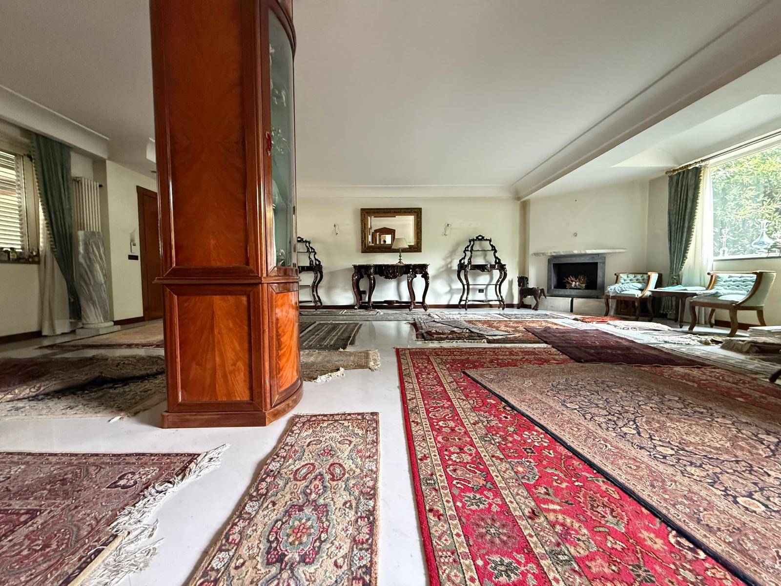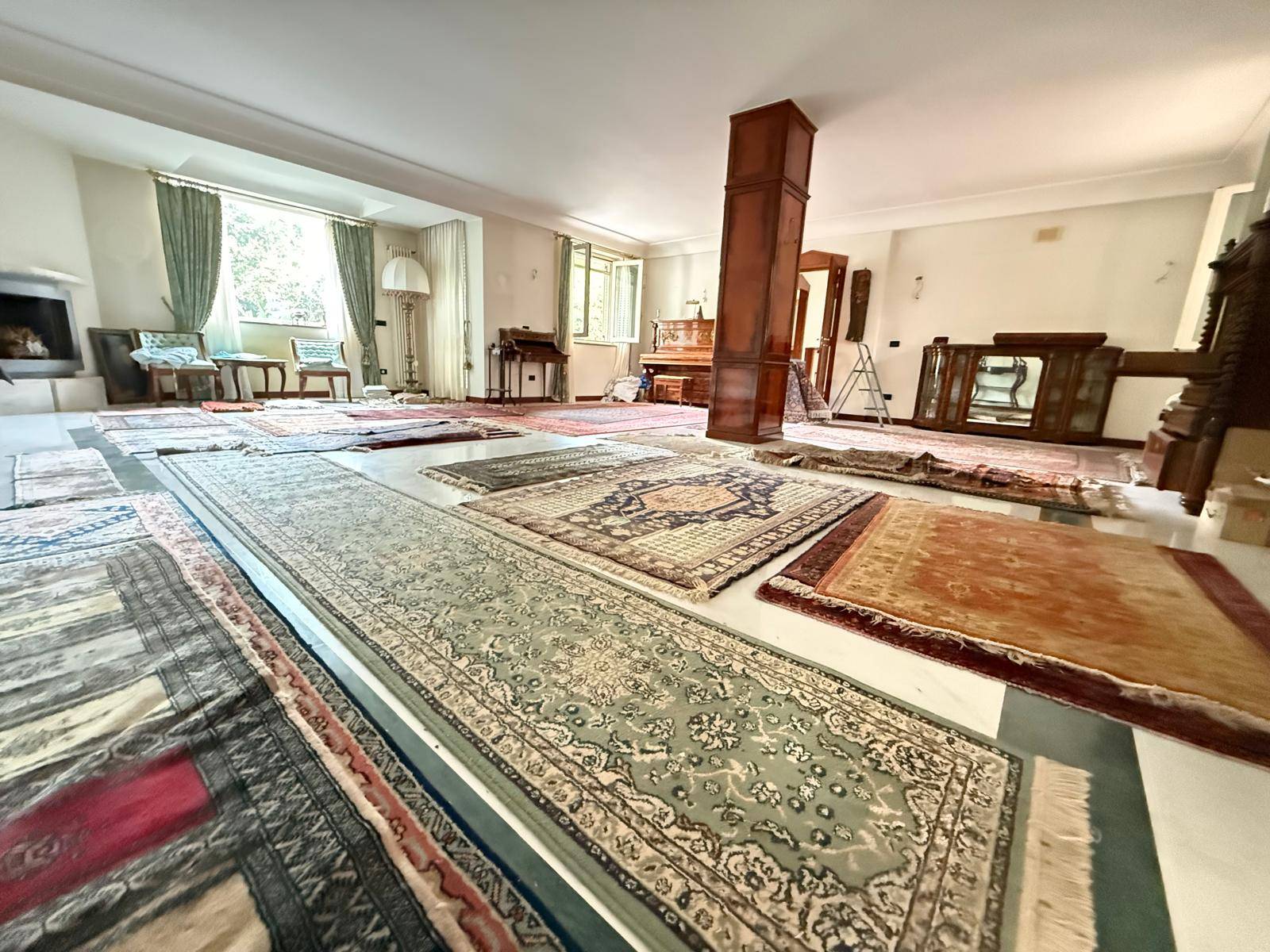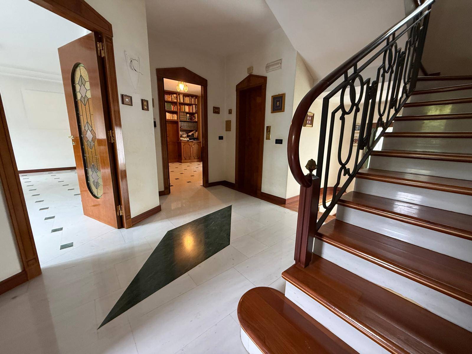 Dal terrazzo si accede al piano terra,dove si sviluppa la zona giorno composta da un importante salone di rappresentanza con camino e pavimentazione in marmo,un bagno di servizio e una seconda sala con camino con accesso diretto al giardino privato,dal quale possibile raggiungere anche il piano seminterrato tramite ***.*******.** il piano uno studio,perfetto come ambiente di lavoro o stanza dedicata agli ospiti.