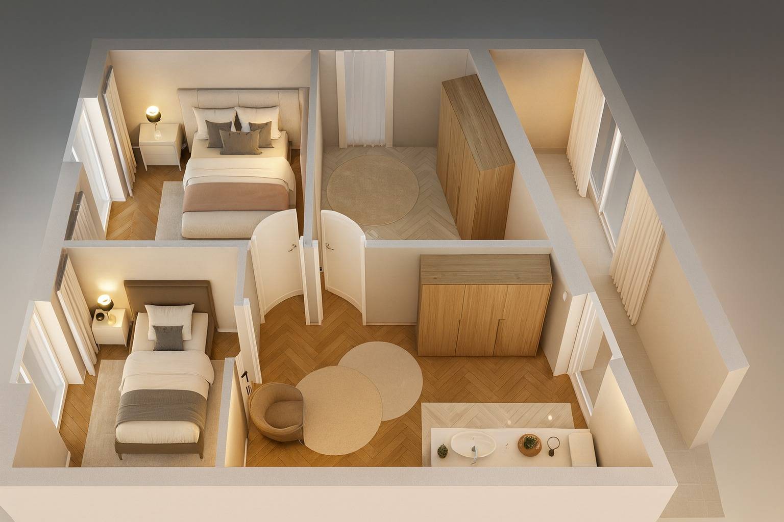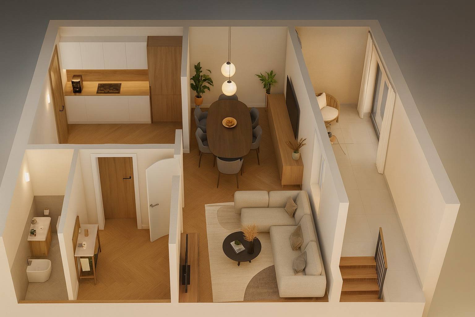 Ogni unit abitativa si sviluppa su una superficie di circa 130 mq, distribuiti in modo armonioso per valorizzare la luce naturale e garantire ambienti funzionali e raffinati.