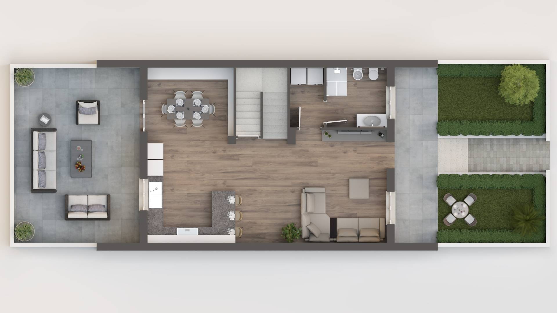 L' immobili in Classe A risulta composto come segue: TIPOLOGIA A: 65 mq a piano - Nuova costruzione villa a schiera centrale composta da: -Piano Terra: ingresso living con salone, cucina abitabile, servizi e giardino su due lati. -Piano Primo: tre camere da letto e servizi.