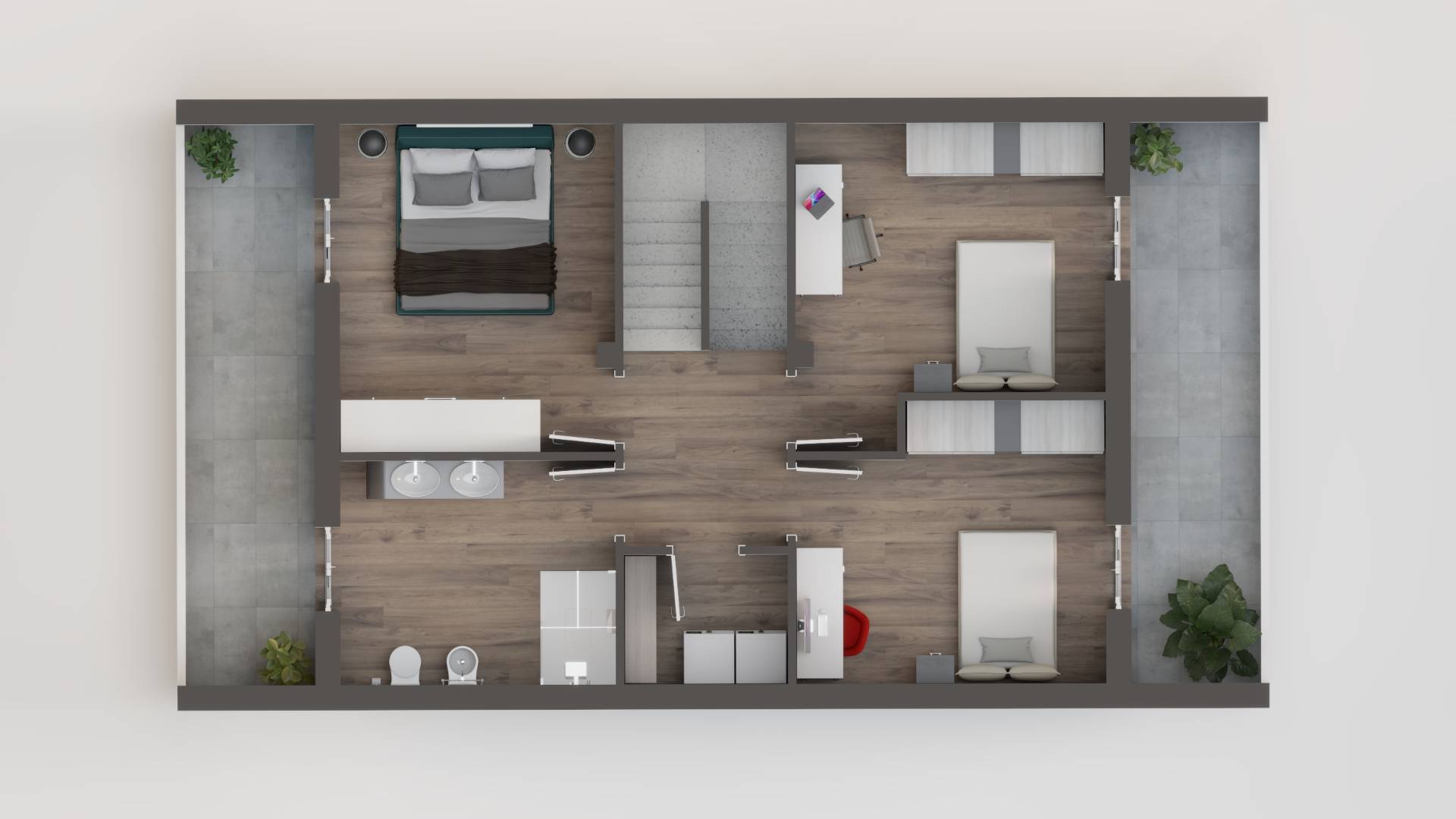 L' immobili in Classe A risulta composto come segue: TIPOLOGIA A: 65 mq a piano - Nuova costruzione villa a schiera centrale composta da: -Piano Terra: ingresso living con salone, cucina abitabile, servizi e giardino su due lati. -Piano Primo: tre camere da letto e servizi.