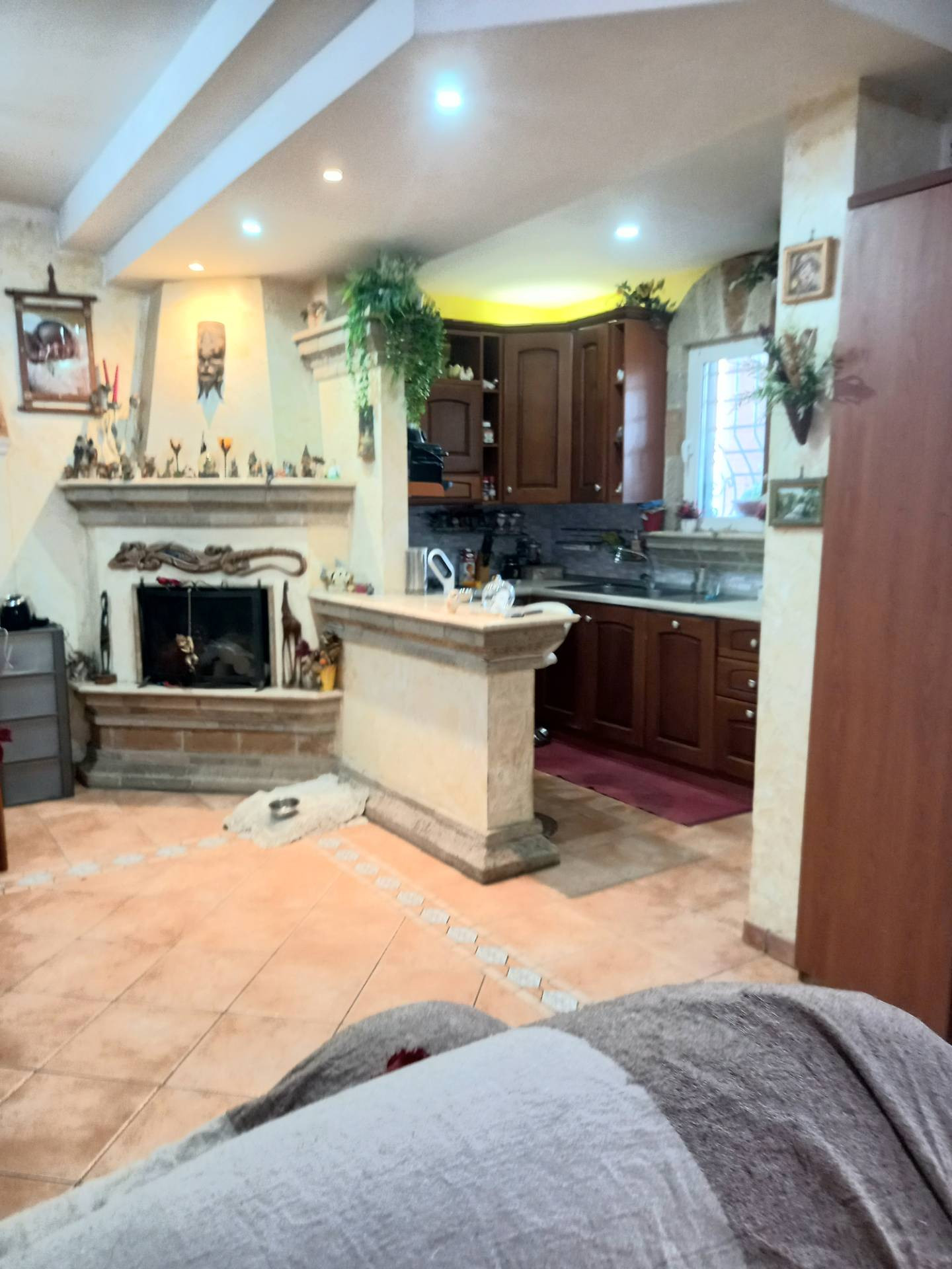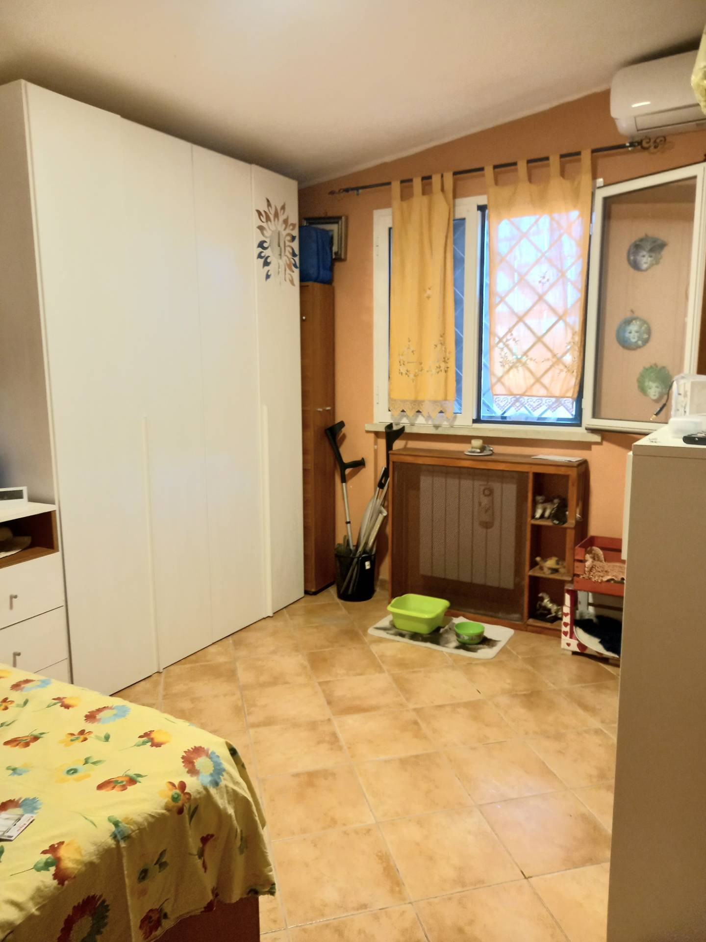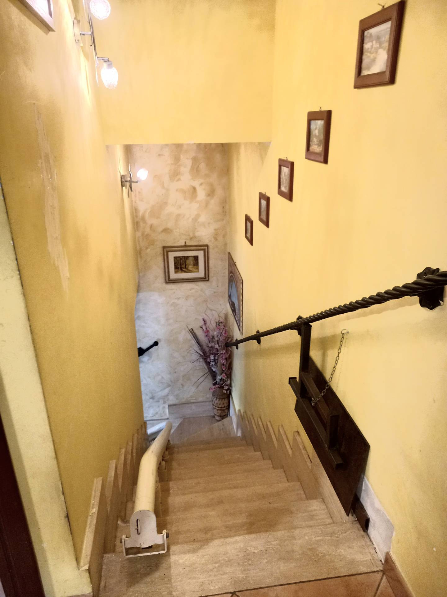 Il piano terra composto da un salone con camino, angolo cottura ed un servizio, per mezzo di una scala servita da un monta scale ci troviamo nella zona notte, composta da una ampia camera matrimoniale con portafinestra per accedere ad un ampio terrazzo con copertura trasparente ed due ripostigli con affaccio sul giardino padronale, una cameretta con finestra ed un servizio con comoda doccia finestrato.