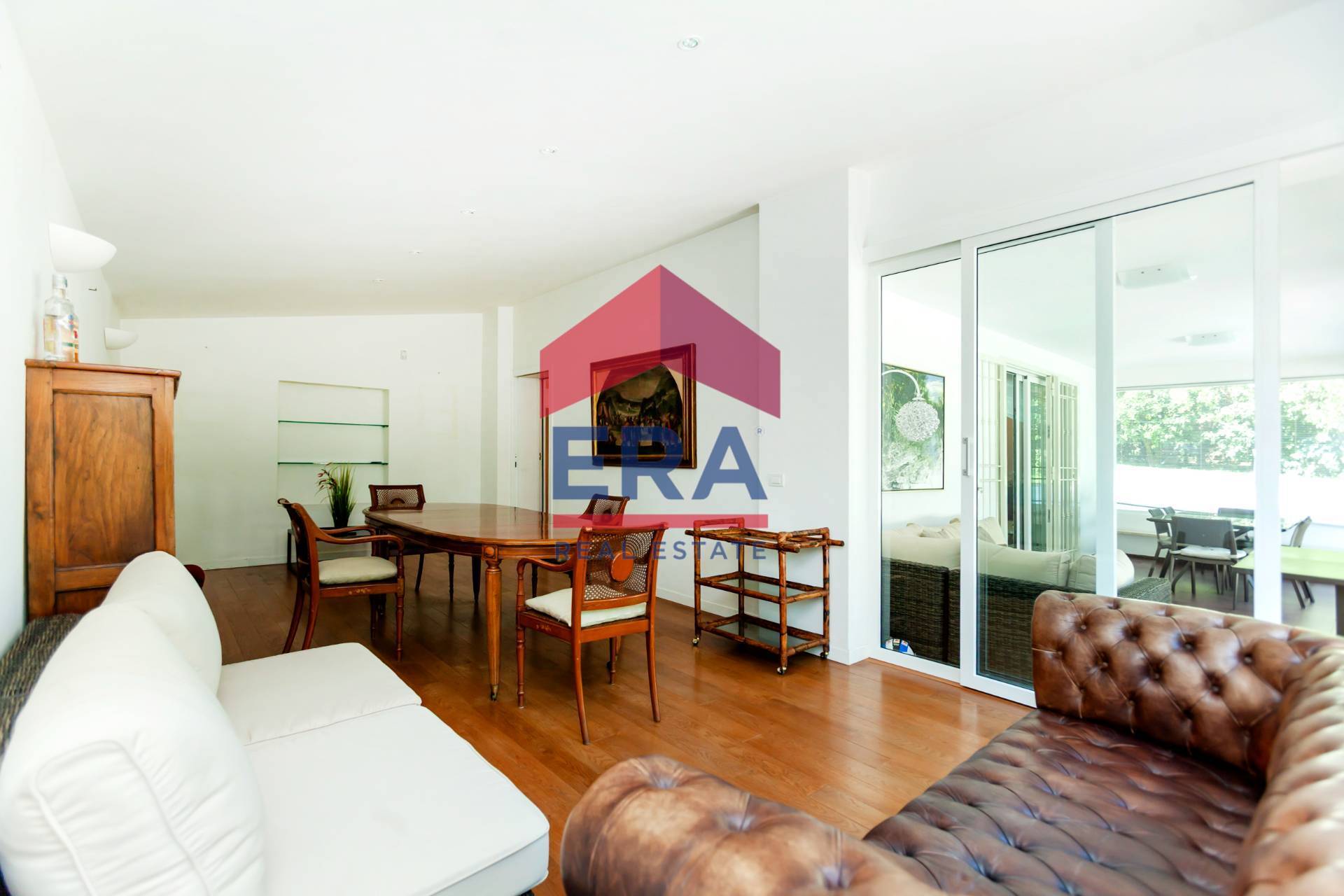 Al piano terra si apre la zona giorno, composta da un ampio salone doppio con camino e una luminosa sala da pranzo, entrambi con accesso diretto a una veranda coperta, perfetta per vivere gli spazi esterni durante tutto lanno.
