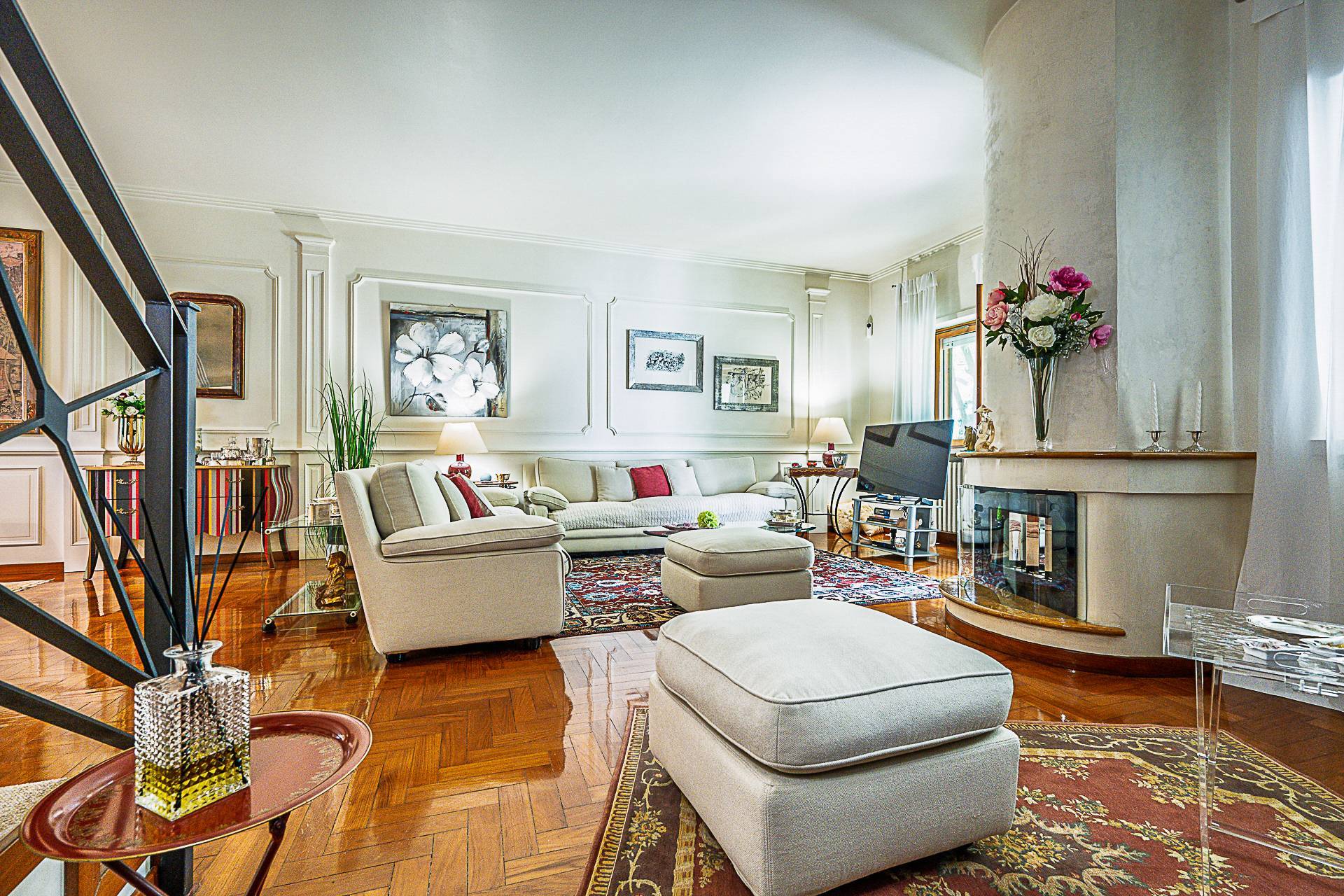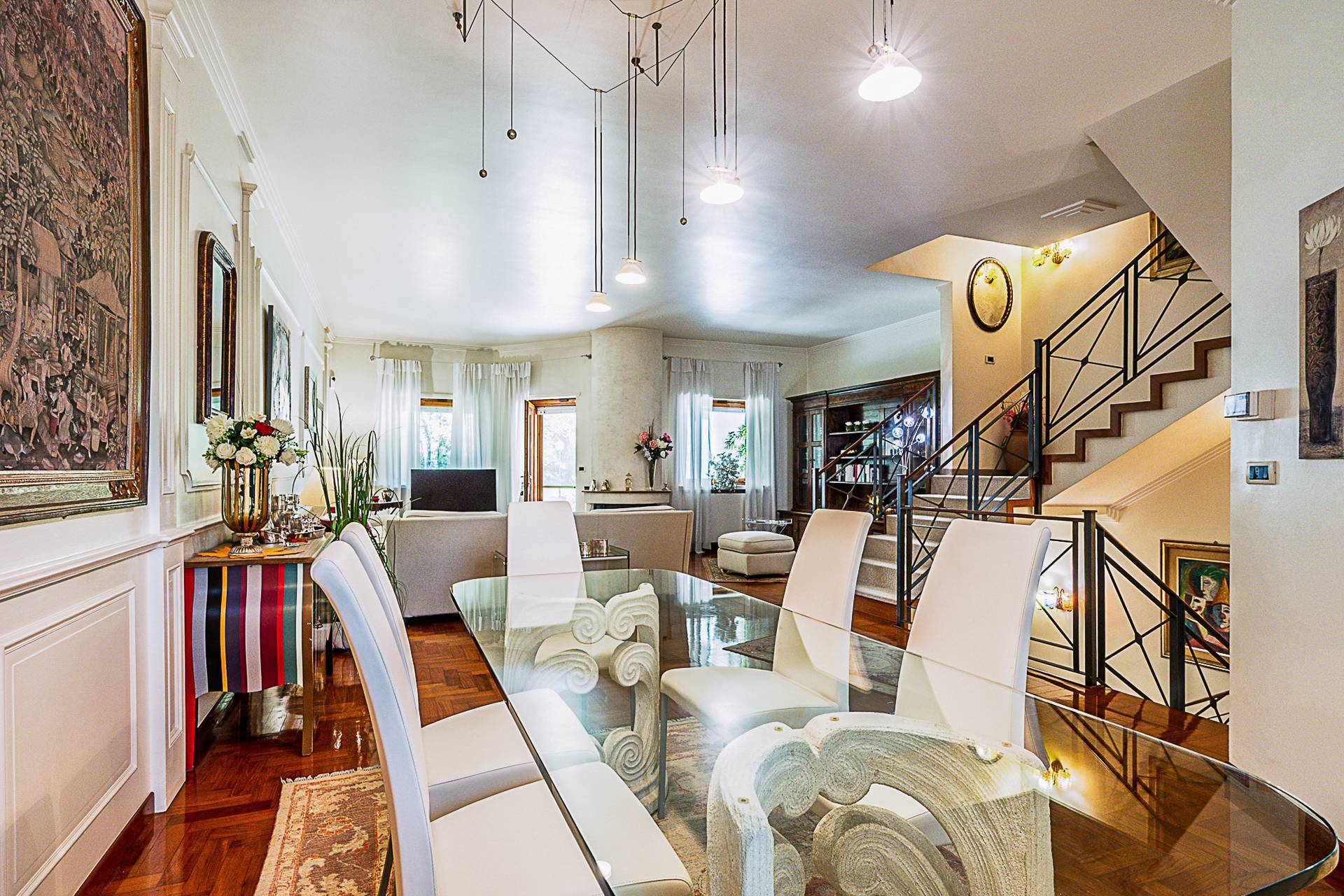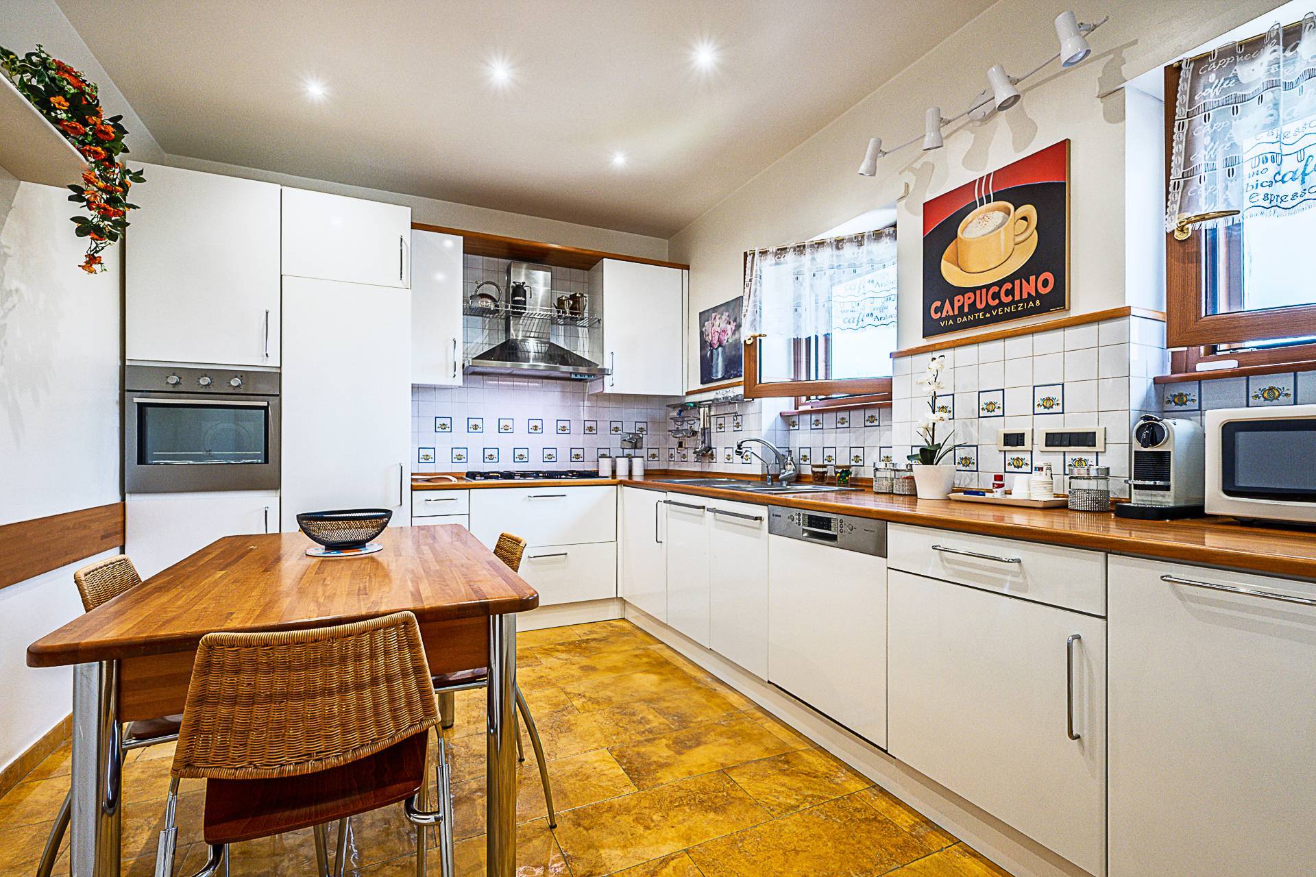 Salendo al primo piano si accede a una grande zona giorno open space ben organizzata in zona divani con uscita sul giardino privato, angolo lettura e sala da pranzo, la cucina abitabile e rimane separata dalla zona giorno.