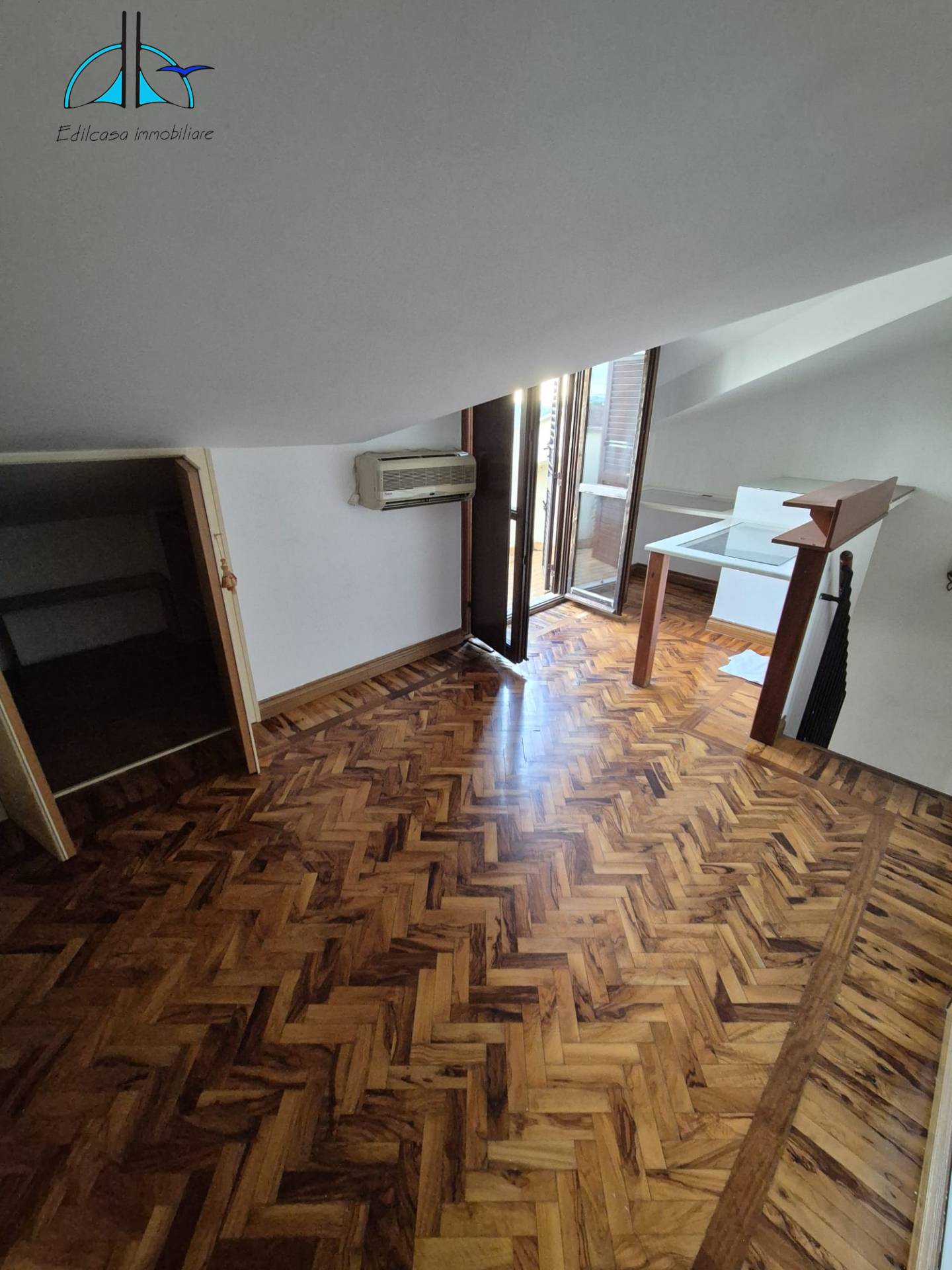 L'immobile al piano terra composto da: ingresso, luminoso zona giorno, cucina abitabile con affaccio su terrazzo perimetrale, camera da letto matrimoniale con parquet e bagno con doccia.