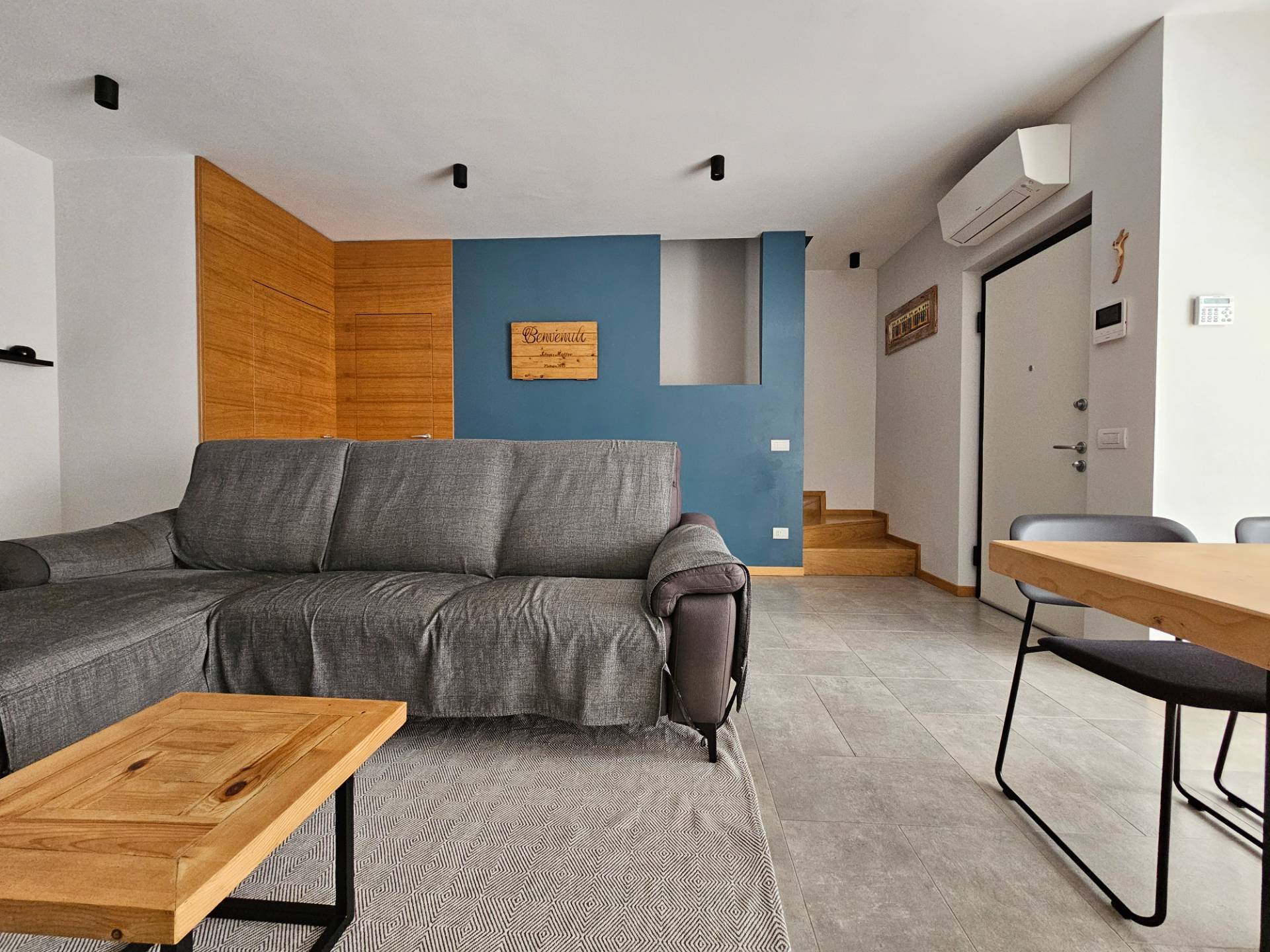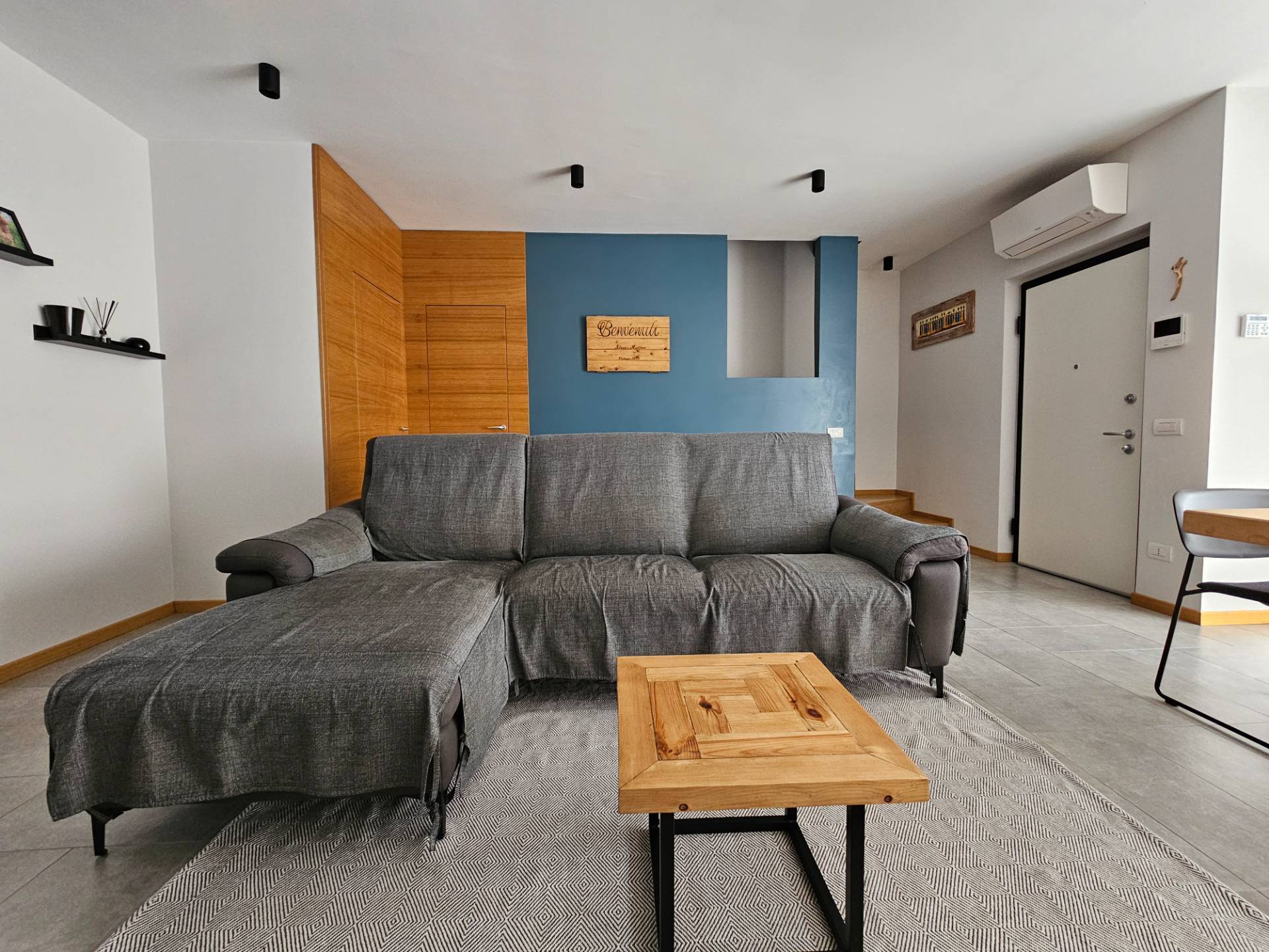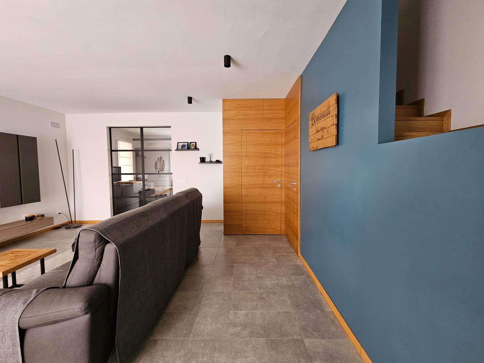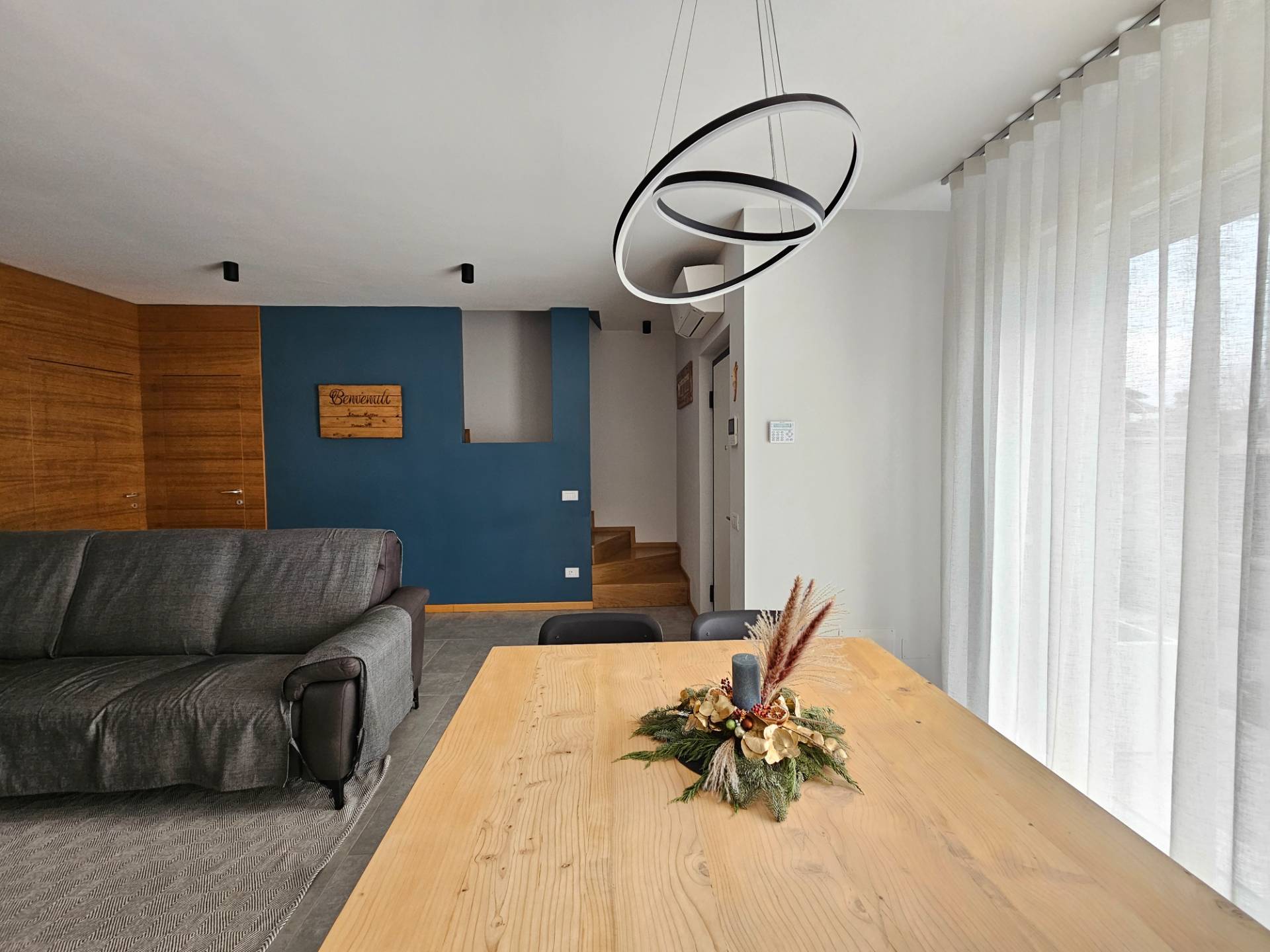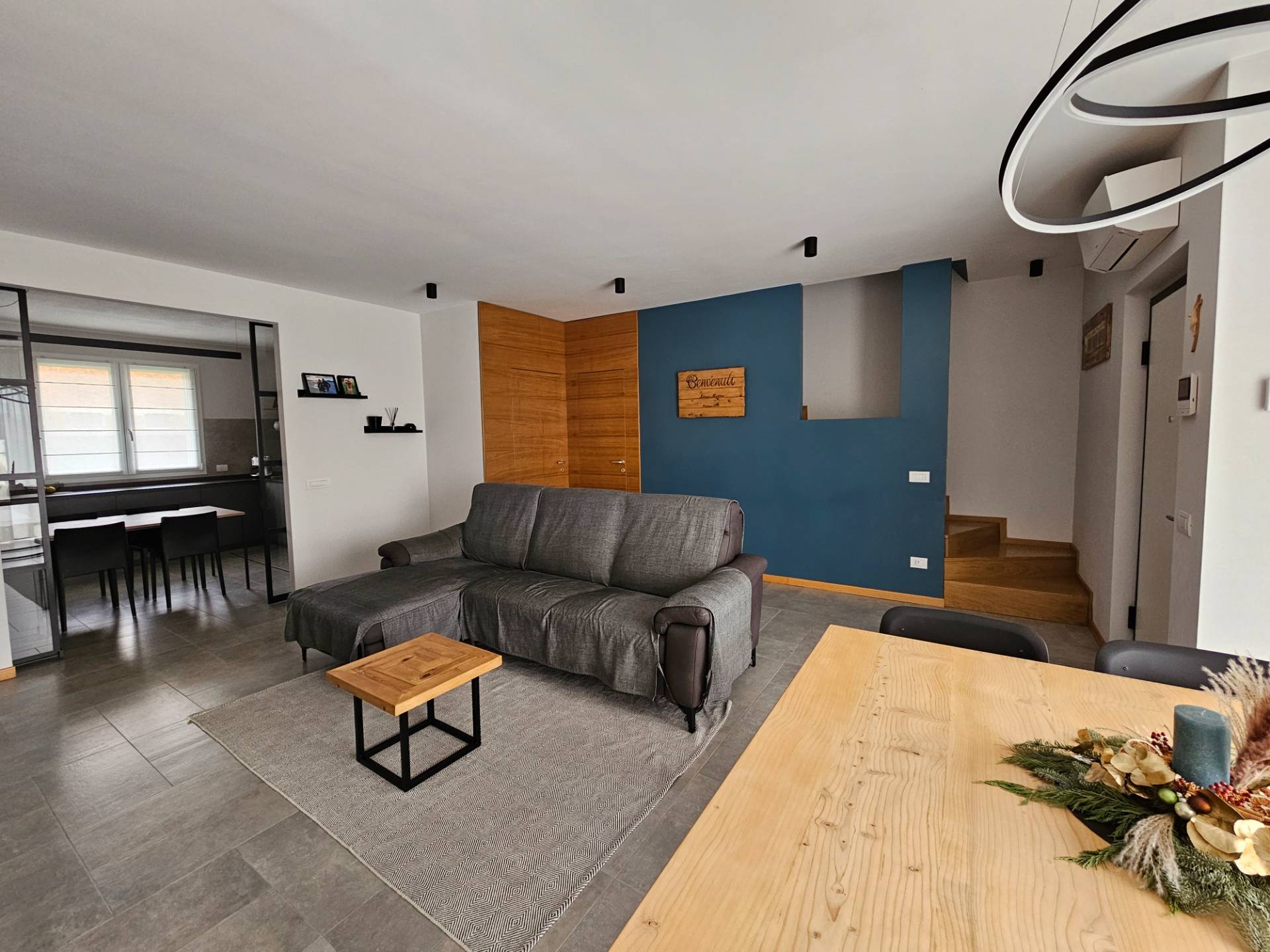 La scala che conduce al primo piano, rivestita in legno coordinato alle porte interne, rappresenta un ulteriore elemento di pregio, in linea con le ottime finiture e la grande attenzione ai dettagli che caratterizzano lintera abitazione.