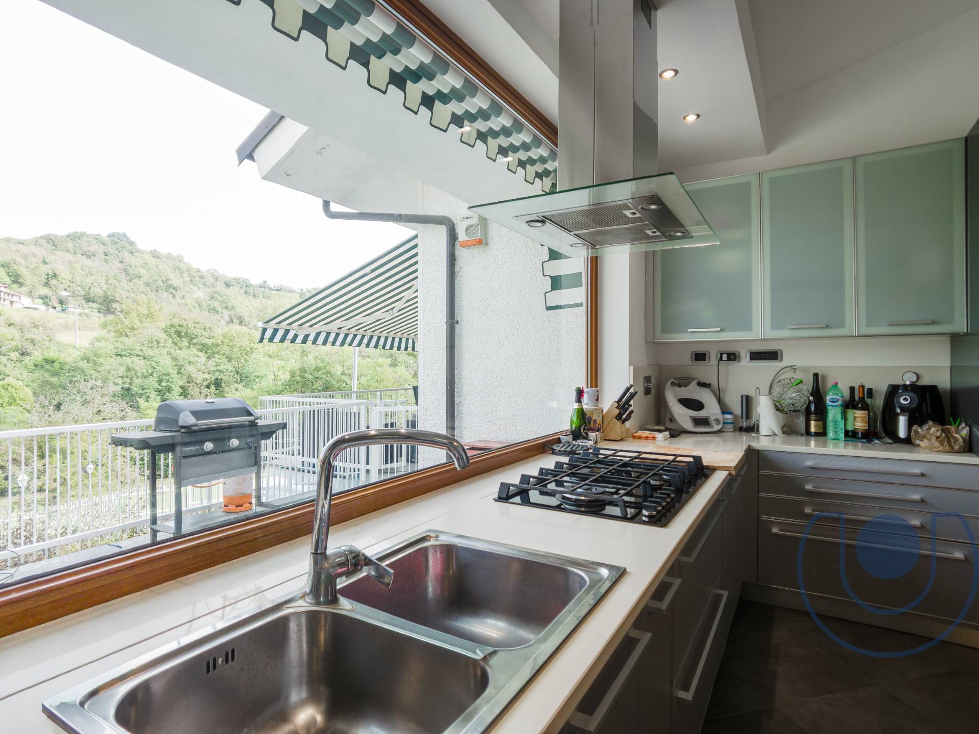 Al piano terra troviamo un ingresso su disimpegno, un ampio salone, una fantastica cucina abitabile con vetrata sulla collina adiacente.