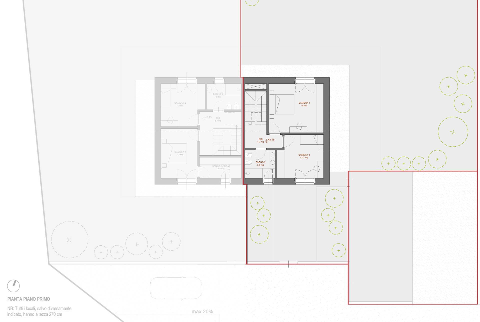 Collegato tramite scala interna, il primo piano composto da una camera da letto matrimoniale con accesso privato a un terrazzo di 15 mq, una camera da letto doppia/uso singolo e un bagno.