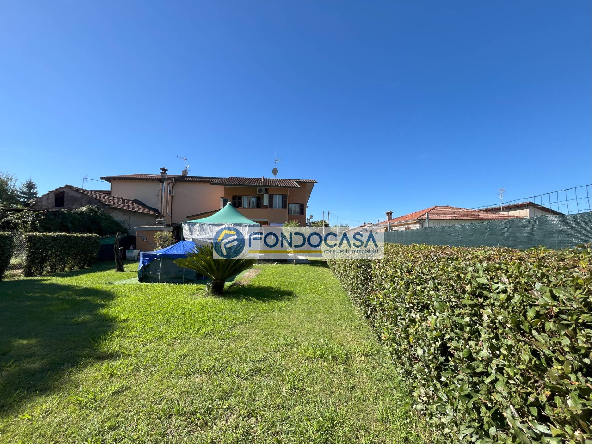 Thank you. Property managed by Fondocasa Garda&Versilia AAA recherche tranquillit ! ! ! Couple sympathique, vendre, villa mitoyenne situe au rez-de-chausse et compose comme suit : entre avec grande cuisine dnatoire, grand sjour lumineux, couloir de nuit, chambre double et salle de bains principale en marbre avec double vasque ; possibilit de crer une deuxime chambre au grand sous-sol ; un jardin d'environ 600 m, idal pour les apritifs et les barbecues entre amis, ainsi qu'une place de parking compltent la proprit ! NB : Certaines informations descriptives du bien peuvent tre approximatives (par exemple : frais de chauffage, adresse prcise, charges de coproprit, compteurs de surface, etc.) et seront donc fournies intgralement par tlphone ou lors du rendez-vous. Merci.