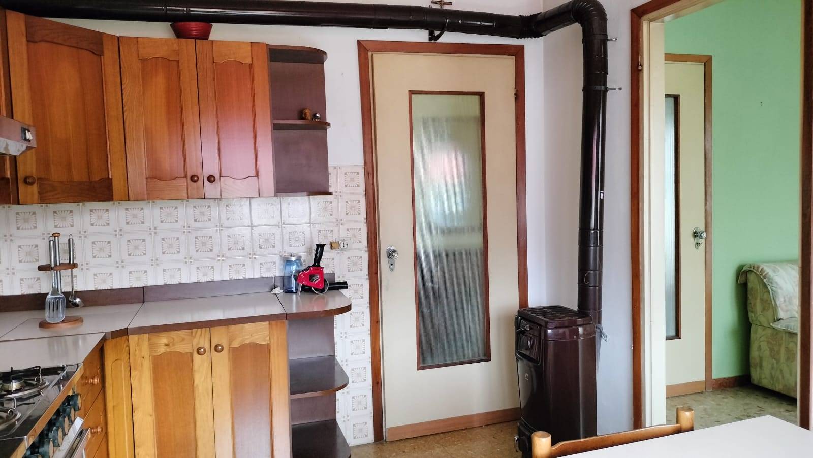 Composta da: ingresso, cucina, soggiorno- pranzo, disimpegno con stufa a legna, tre camere matrimoniali, bagno, terrazzo, cantina direttamente comunicante.