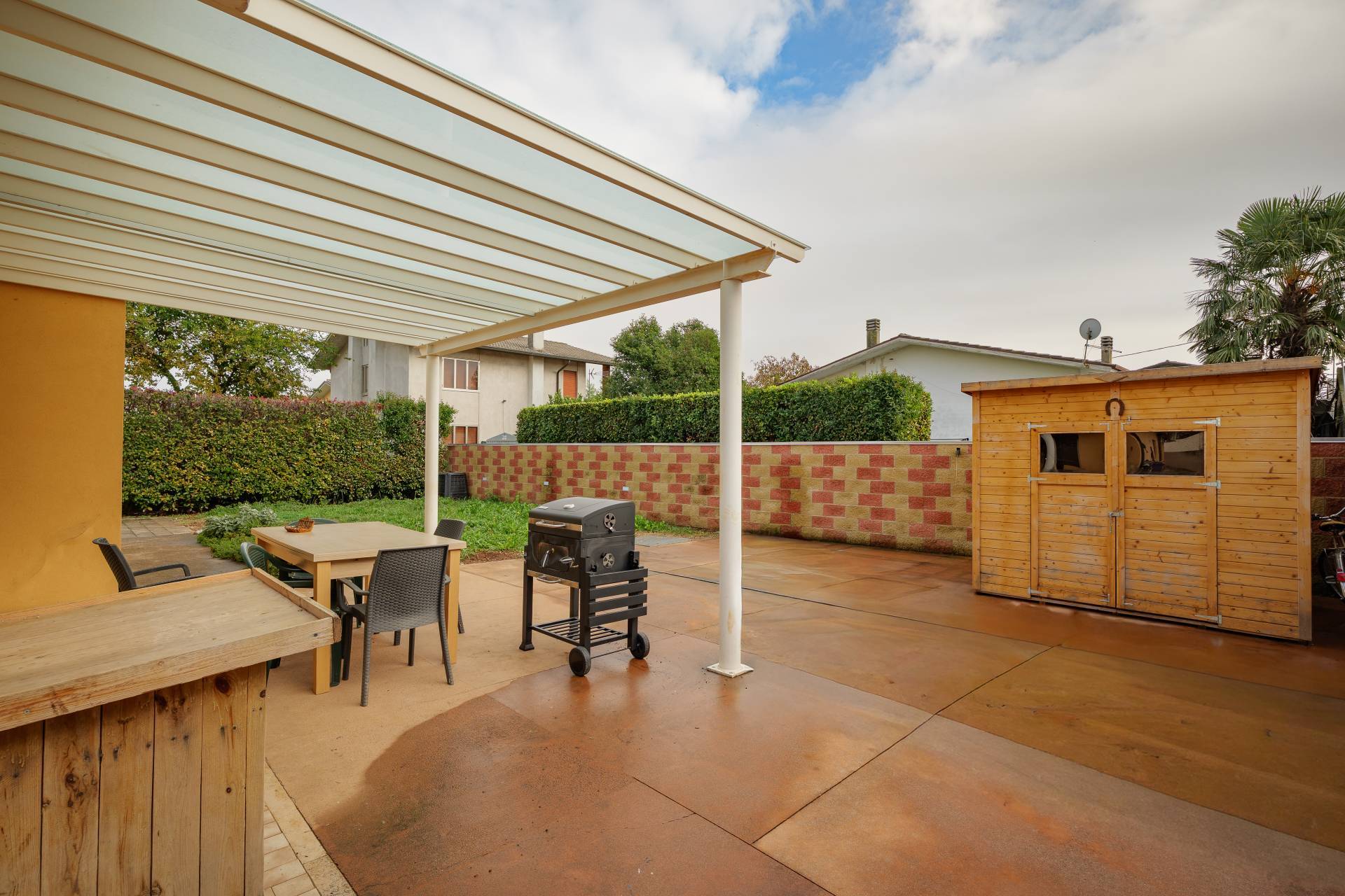 La casa ha: il portone blindato, il climatizzatore a pompa di calore, tutti i serramenti con vetro - camera, la stufa ,il cancello in ferro battuto elettrificato e un pergolato esterno coperto.
