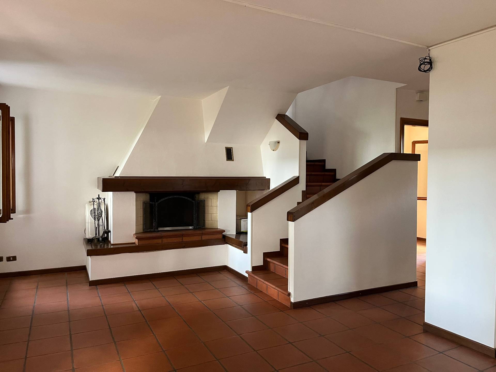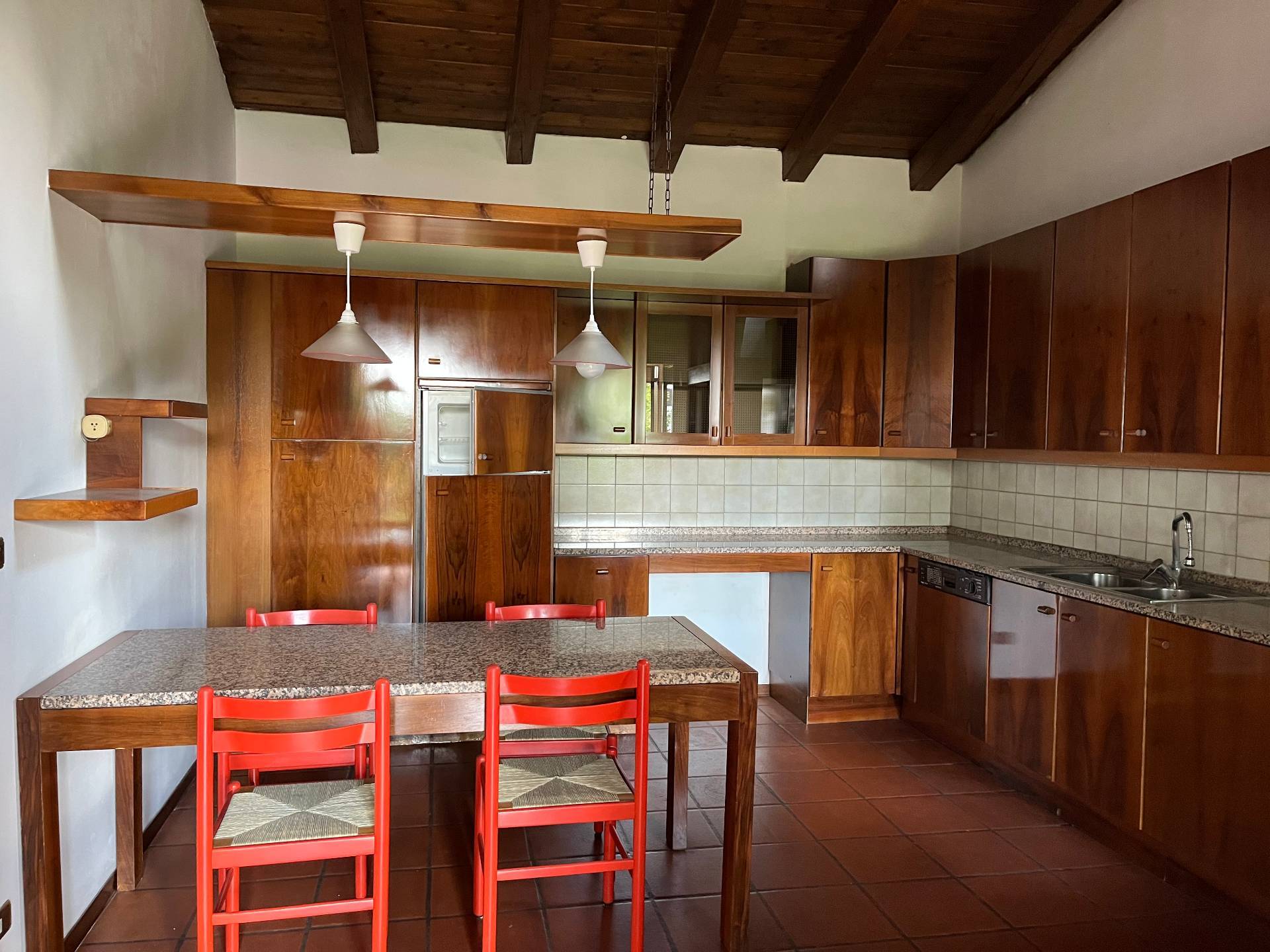 Composta da: ingresso su ampio soggiorno con caminetto, cucina abitabile con portico su bel giardino privato, ripostiglio finestrato, bagno, lavanderia con accesso diretto nel seminterrato con due locali uso cantina.
