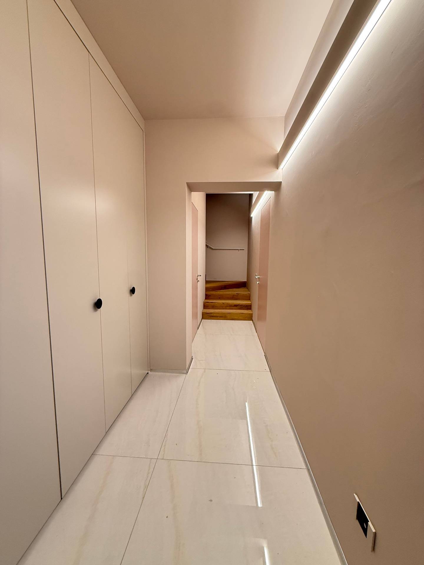 Grandi vetrate, luce naturale che avvolge la zona living, finiture in marmo che dialogano con il calore del parquet: ogni dettaglio pensato per offrire un'esperienza abitativa superiore.
