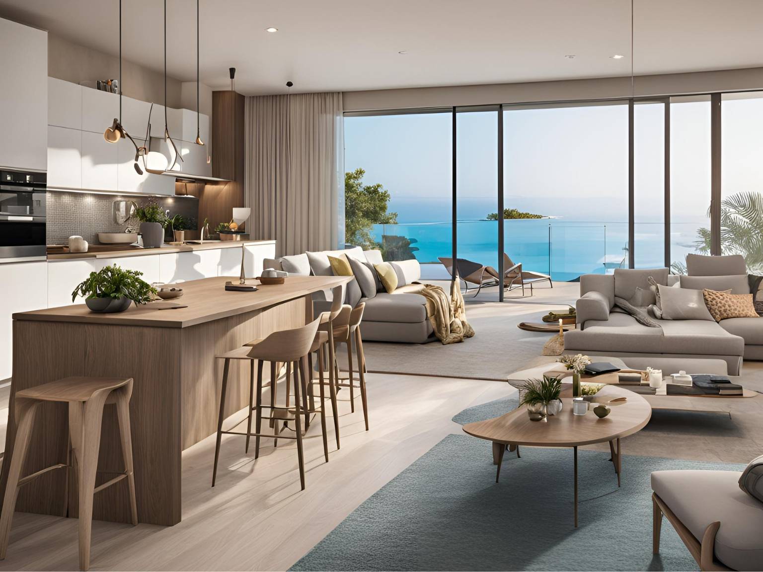 La villa divisa in due appartamenti con ingressi indipendenti, ognuno dei quali gode di vista mare. Ogni appartamento composto da un ampio salone con cucina a vista, 2 o 3 camere da letto e 2 bagni.
