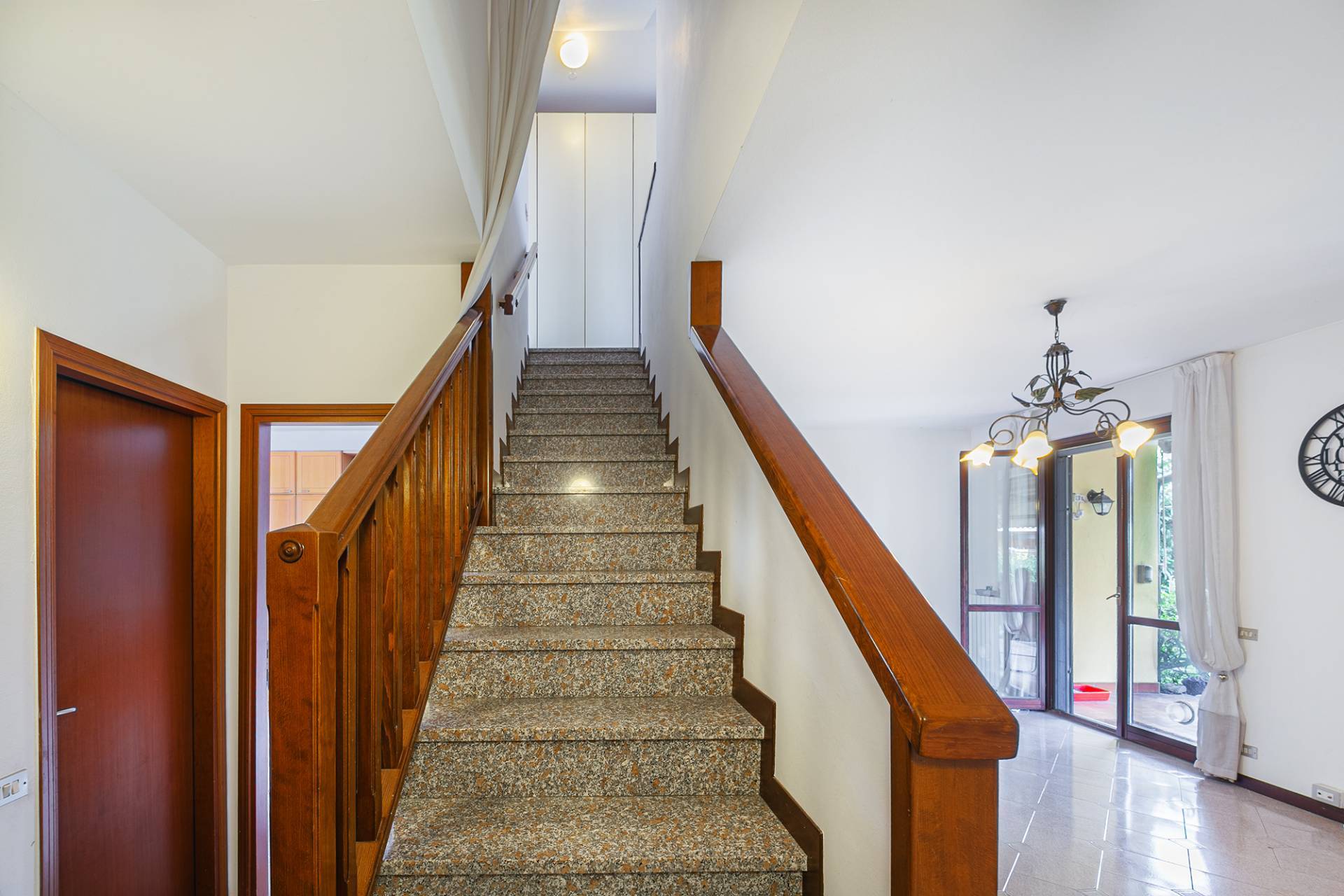 La propriet si estende su un totale di 220 mq, distribuiti su due livelli oltre a mansarda/sottotetto e locale taverna con lavanderia e box doppio in lunghezza Al piano terra troviamo un ingresso , soggiorno con uscita sul giardino privato completo di casetta in legno e zona barbecue allestita , cucina abitabile , bagno di servizio mentre al piano primo tre camere ed un bagno padronale oltre ad un comodo sottotetto da adibire a locale hobby o studio Gli infissi sono dotati di doppi vetri per garantire un'adeguata isolamento termico e acustico.