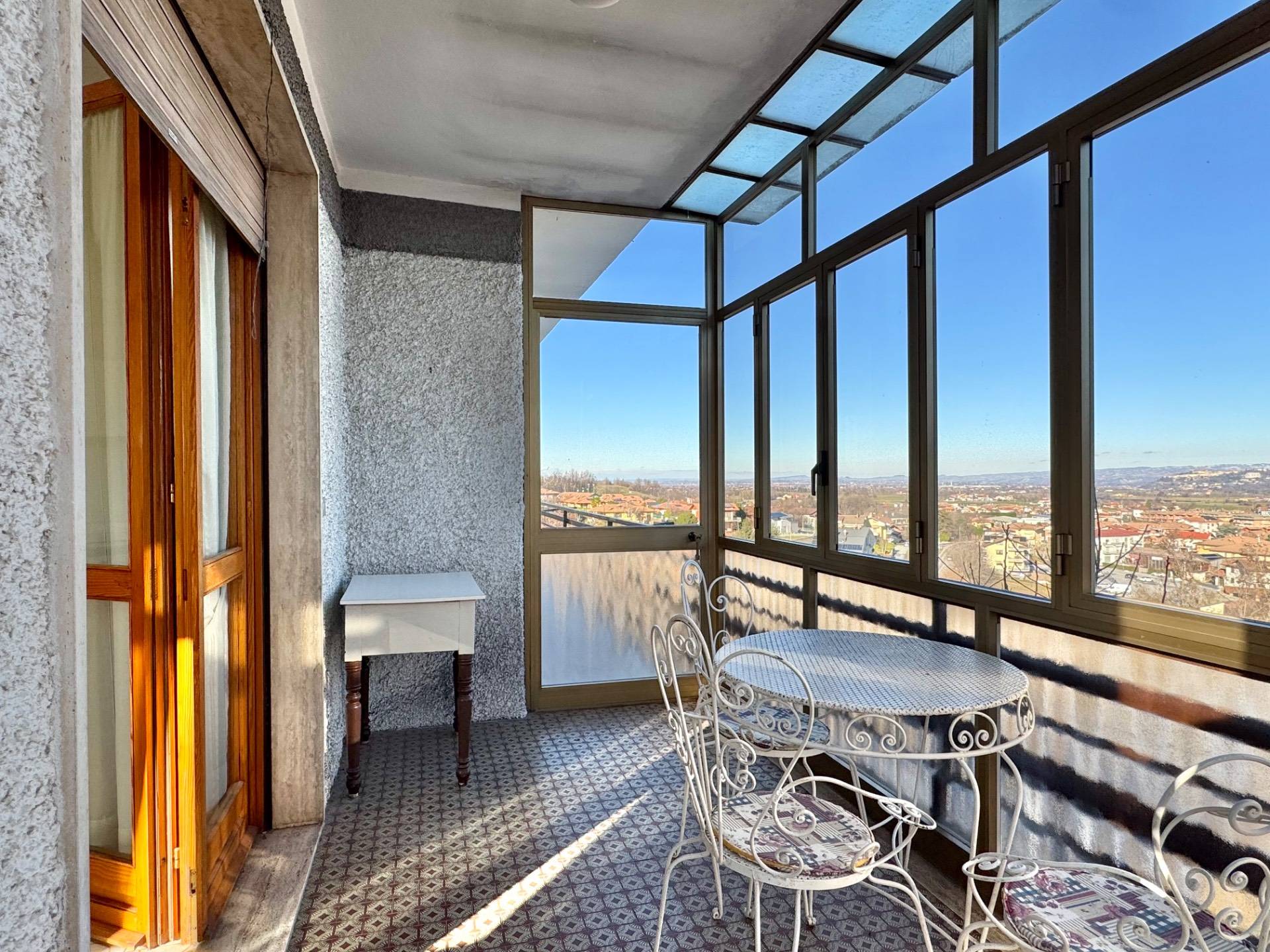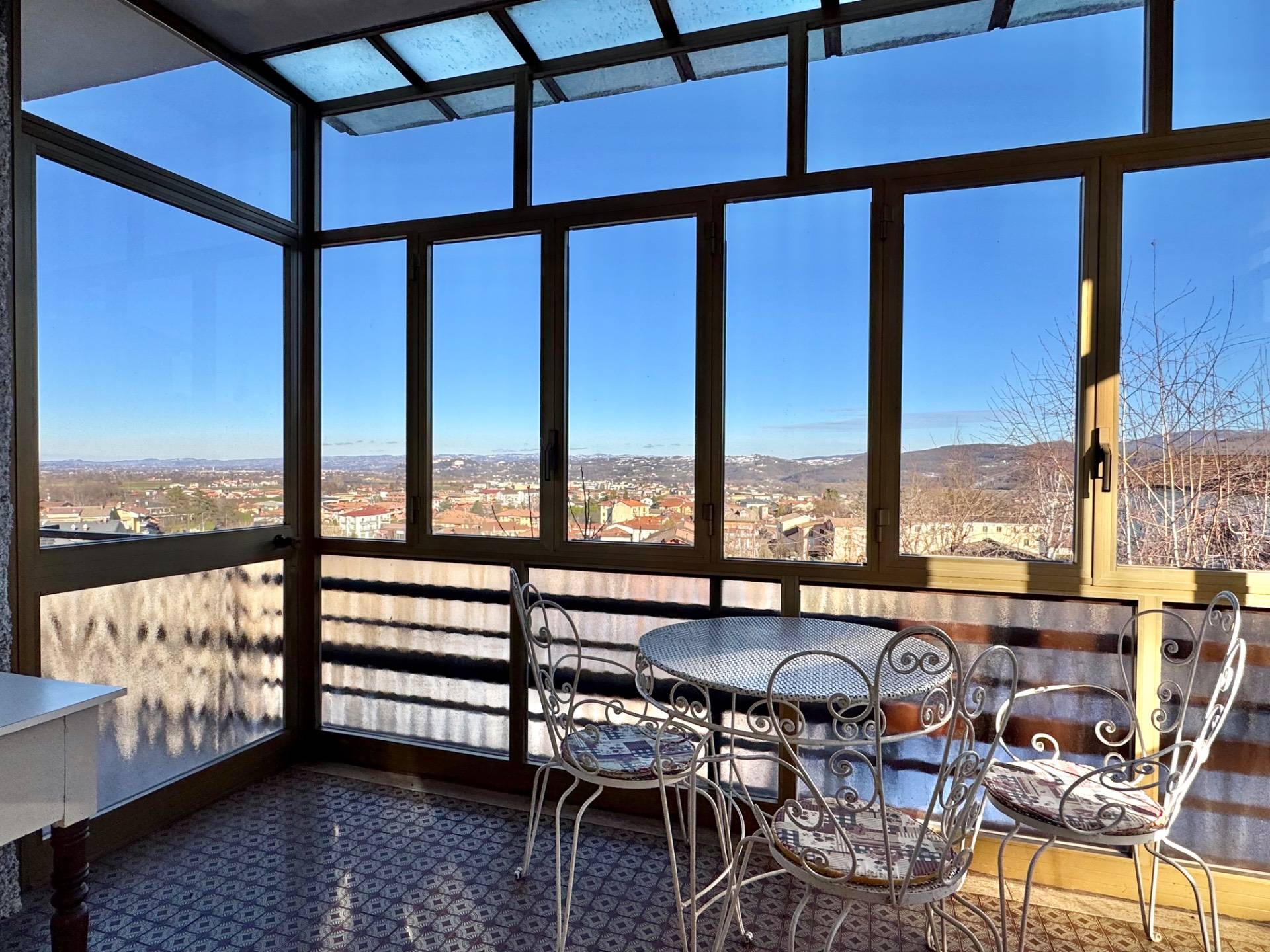Su quasi tutto il perimetro della casa c' il balcone che si ingrandisce in corrispondenza della porta finestra della cucina cos da poter facilmente mangiare sul terrazzino verandato e godere della vista.