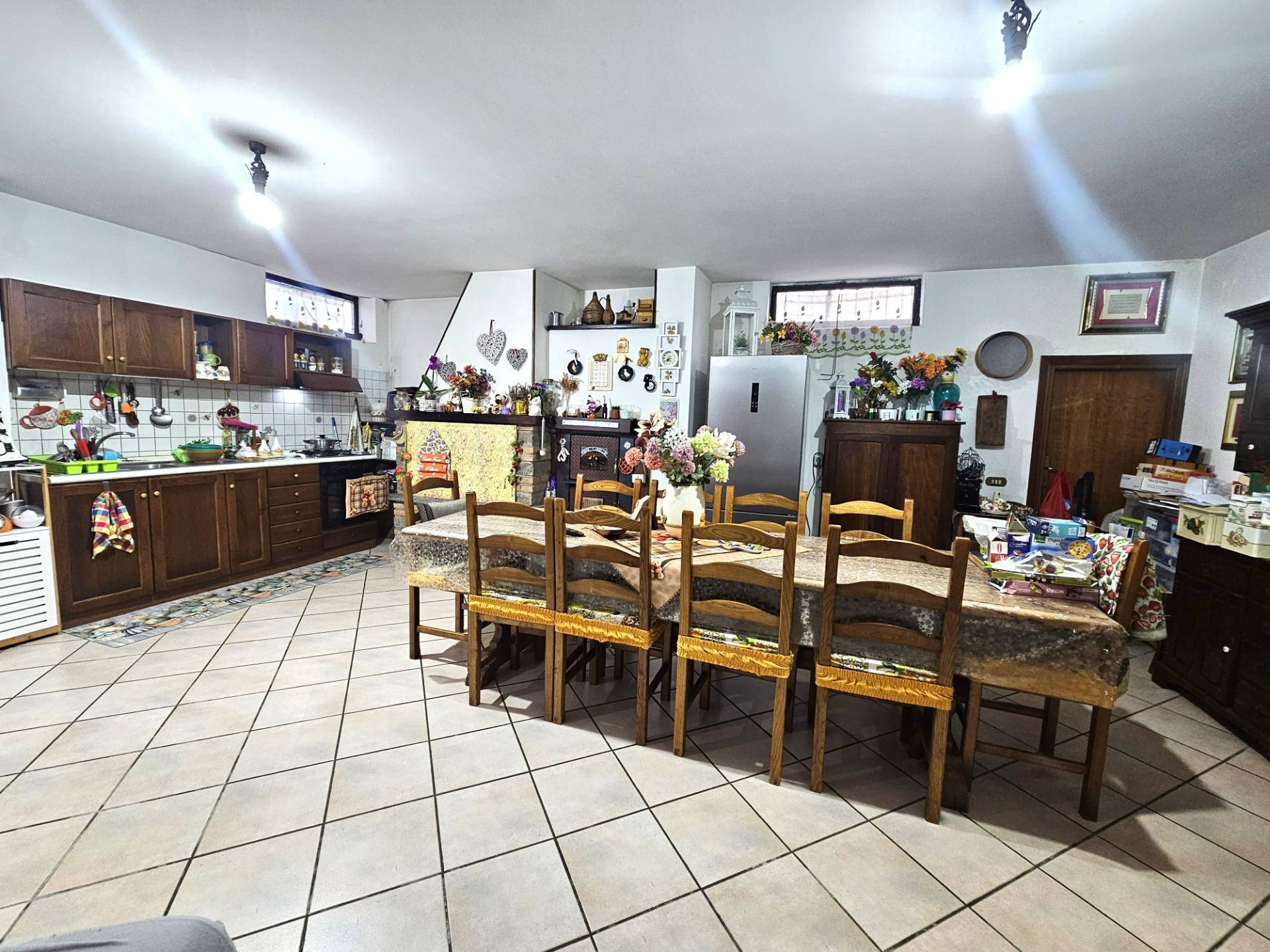 La cucina abitabile, vera anima conviviale della casa, mentre il bagno di servizio completa il piano con praticit.