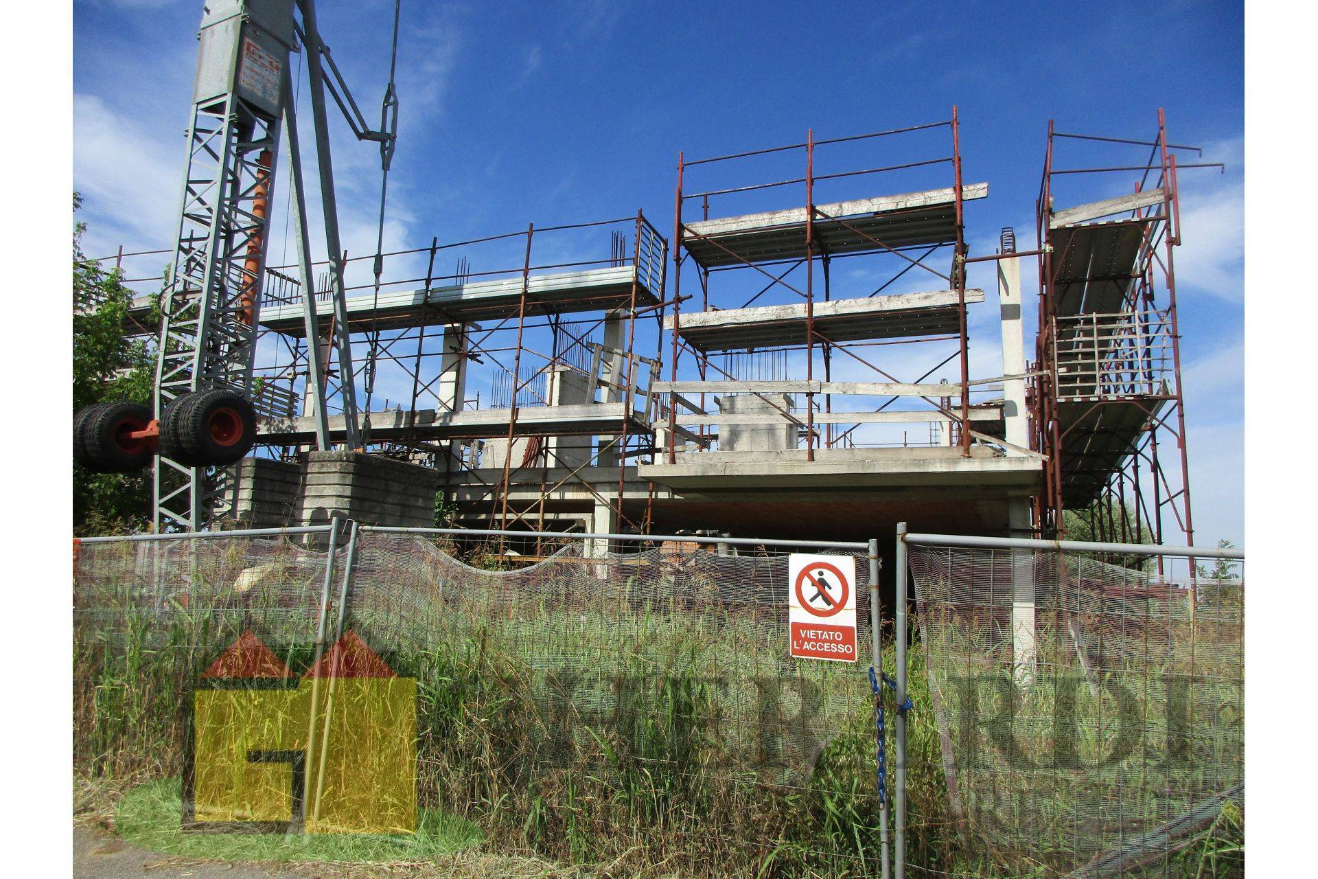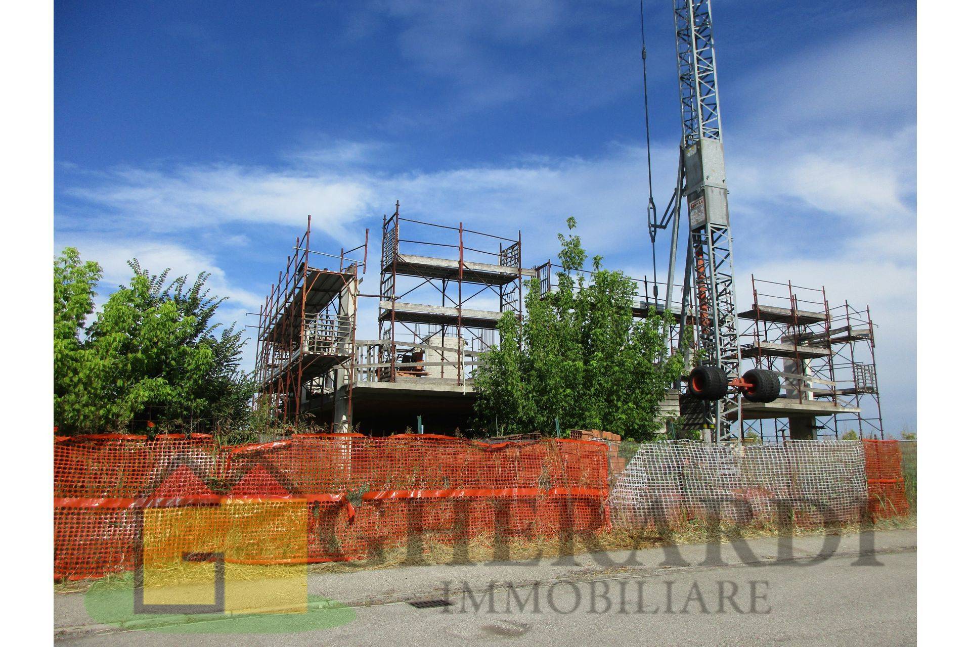 A pochi chilometri da Ferrara, zona via Ravenna, in posizione residenziale, interna e tranquilla, vendesi cantiere al secondo piano, con progetto di casa quadrifamiliare (o quadrifoglio) composta da ville ognuna di: cucina abitabile, soggiorno, 3 camere da letto, 2 bagni, balconi, sottotetto e garage.