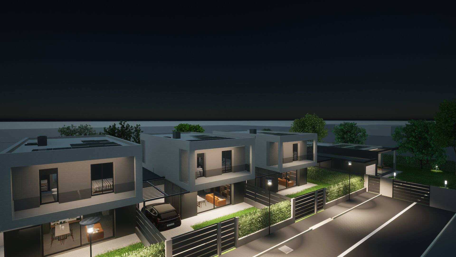 Gli elementi estetici che le caratterizzano sono le ampie finestre e le vetrate progettate per mettere in connessione gli interni con gli spazi conviviali esterni: la pergola dal design semplice e moderno, i due grandi balconi panoramici completano alla perfezione questa abitazione integrandosi allambiente circostante e costituendo un vero pregio ed abbellimento.