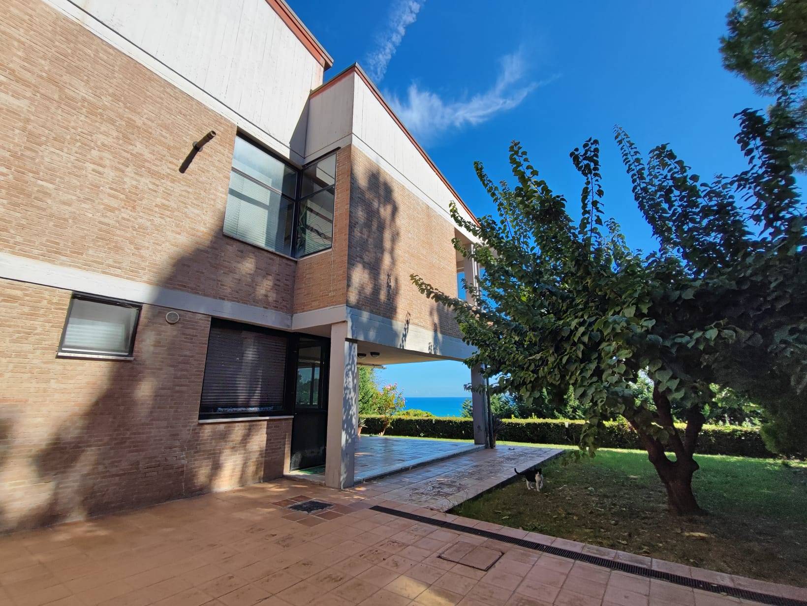 RIF. 2075 - Montesilvano, immersa nel verde e nella quiete della prima collina, proponiamo in vendita affascinante villa singola con grande giardino e fantastica vista mare. Il cancello principale si apre su un viale alberato che conduce alla villa, costruita nel 1980, in stile architettonico razionale, che si sviluppa su tre piani e vanta una superficie totale di 500 mq, oltre ad un ampio giardino ben curato, di oltre 1.000 mq, dove possibile godere di momenti di relax e organizzare eventi all'aperto.