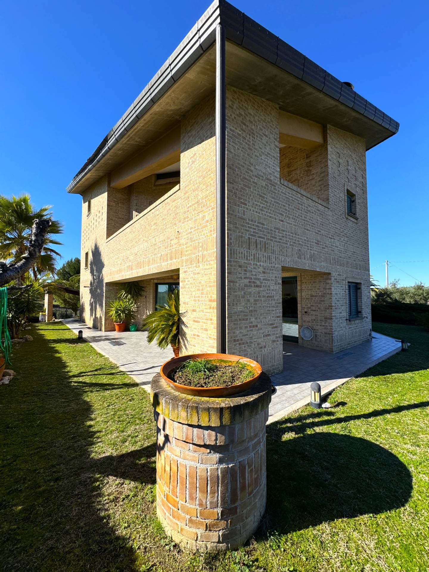 L'immobile il risultato di un progetto costruttivo all'avanguardia con fondazioni e piano interrato in cemento armato, tetto ventilato, gronde in rame con raccolta acque piovane in cisterna di accumulo di 1000 Ettolitri e impianto di irrigazione.