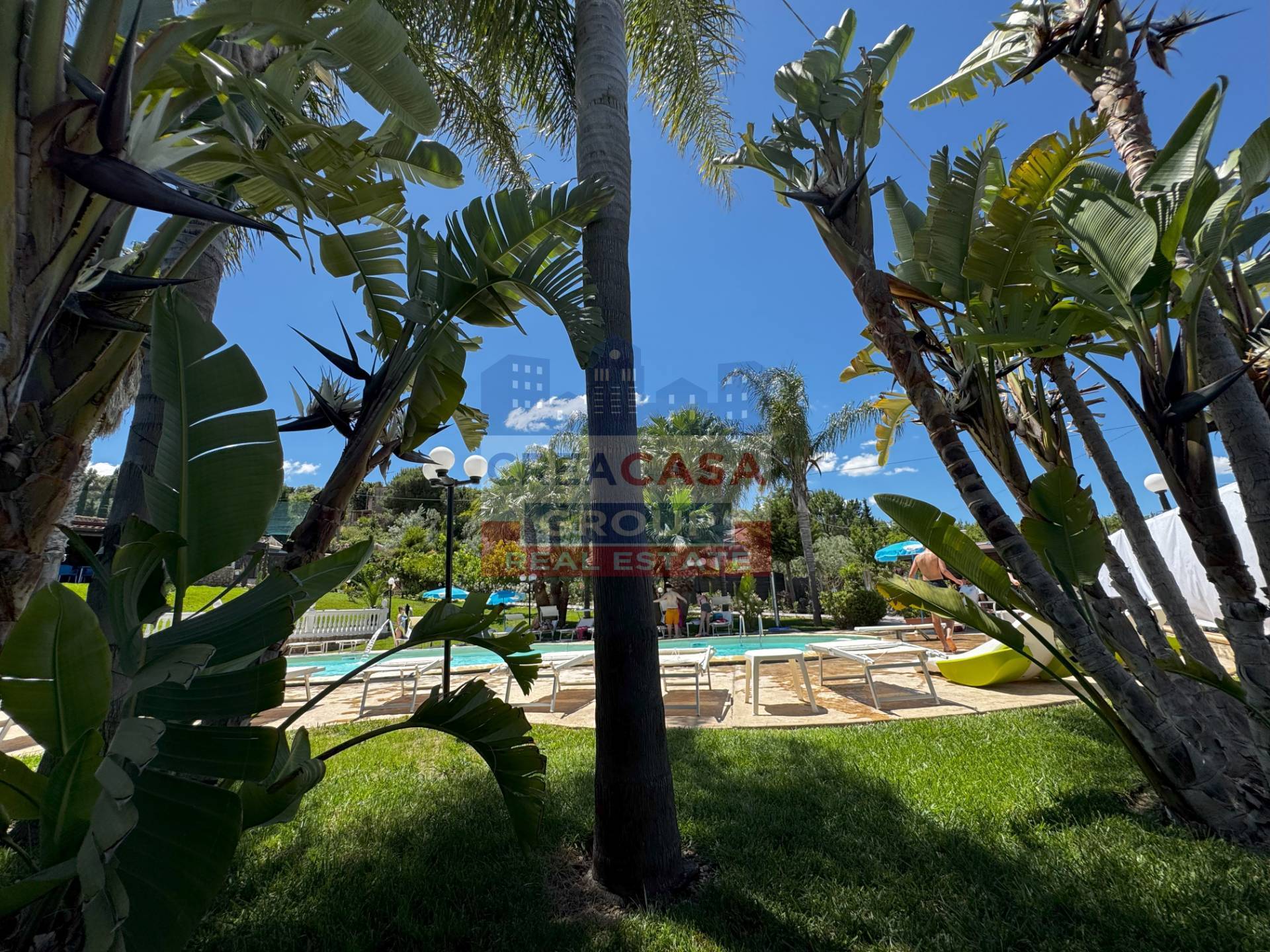 La superficie complessiva del lotto di terreno di mq. 4000 circa con un giardino molto curato nei dettagli dotato di prato inglese, alberi di alto fusto, una piscina attrezzata di lettini e ombrelloni, gazebo, spogliatoio, docce e bagni . Piscina 18 x 6 con impianto ad acqua dolce.