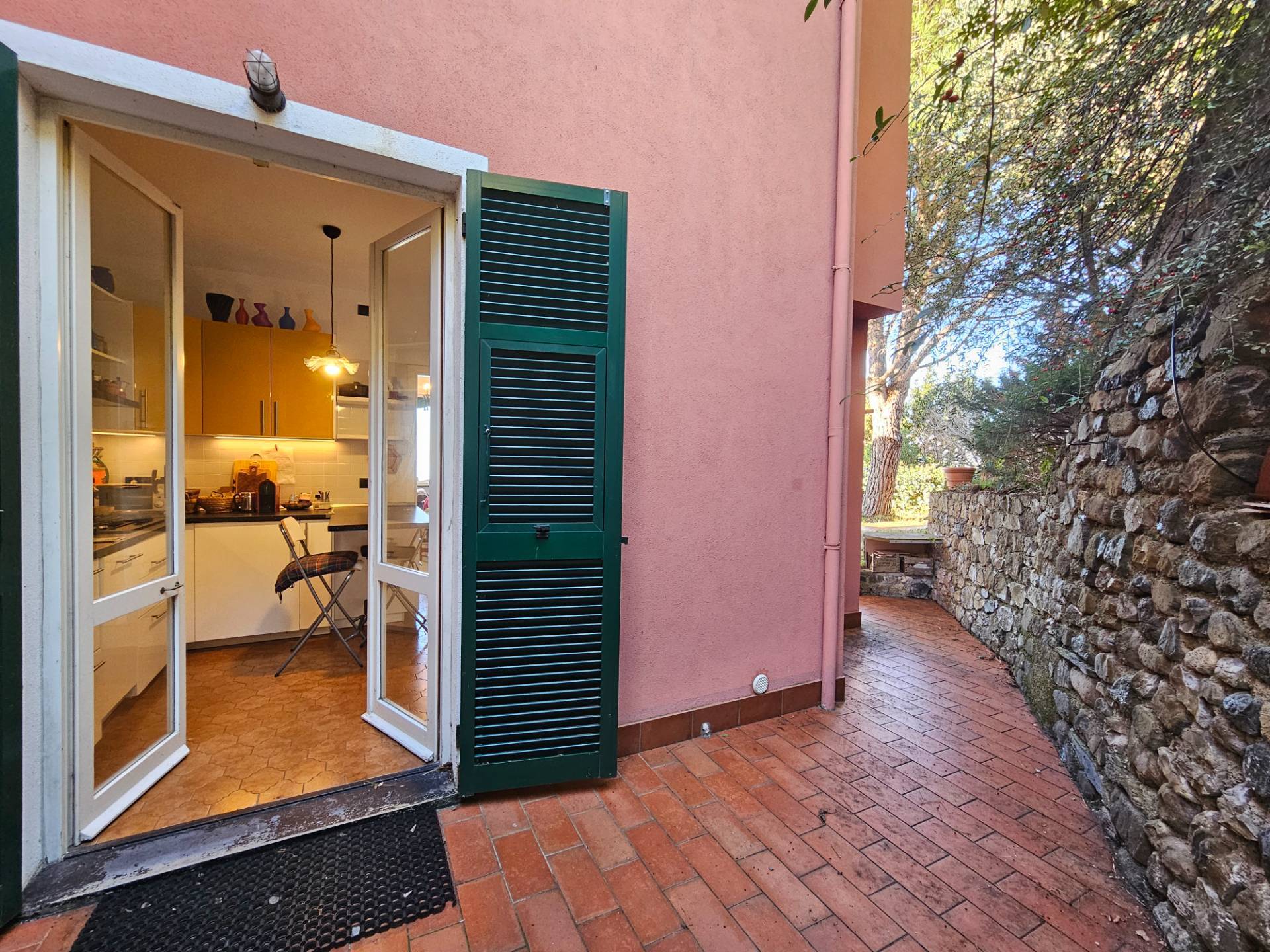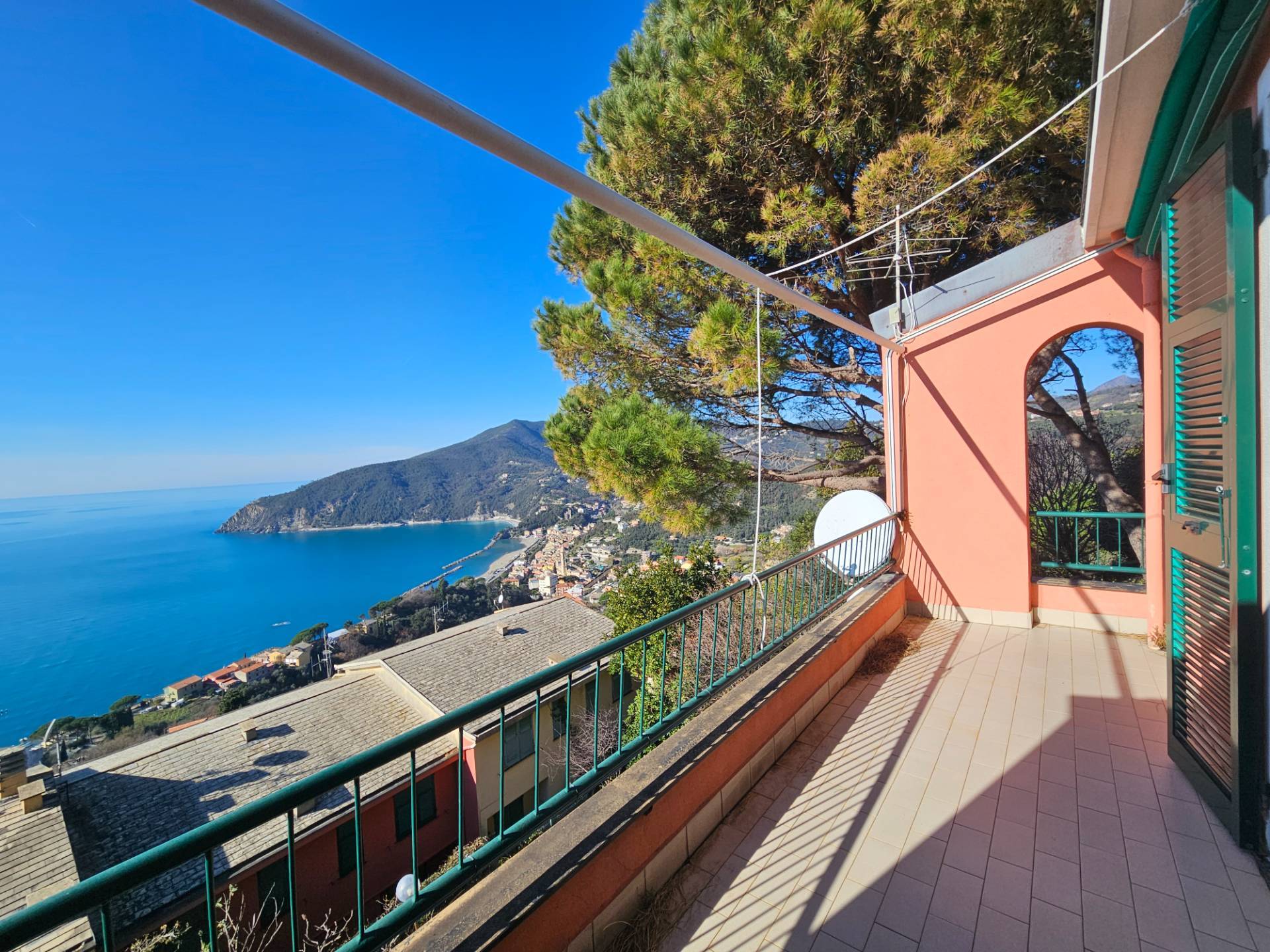La propriet gode di un vasto spazio esterno con favolosa vista mare e sul borgo di Moneglia.