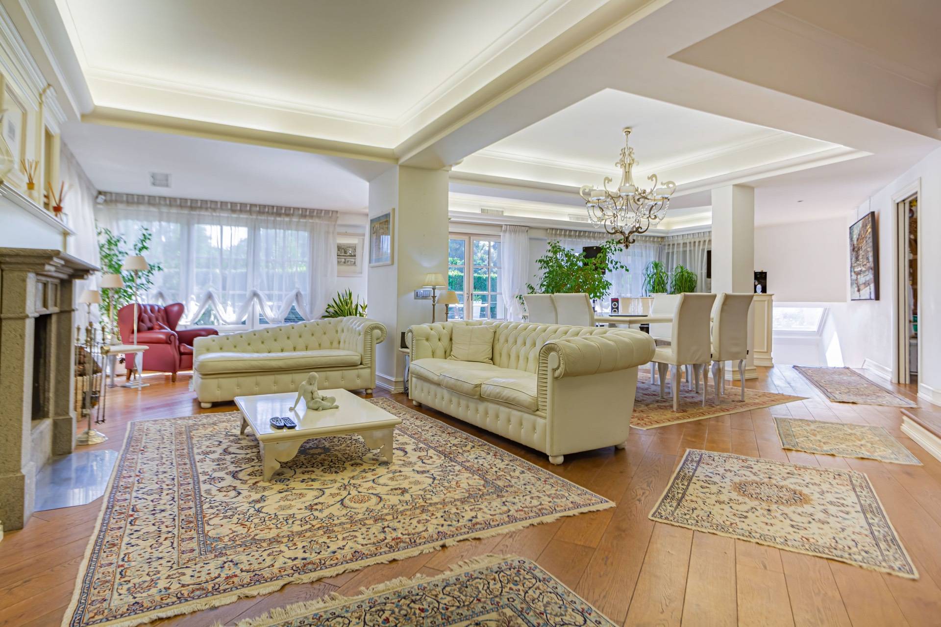 Livello terra: grande living con camino e zona pranzo, bagno di cortesia, guardaroba, cucina, studiolo, veranda di circa 50 mq. Livello superiore: camera padronale con bagno e cabina armadio, altre due camere matrimoniali con bagno en suite, terrazzo.