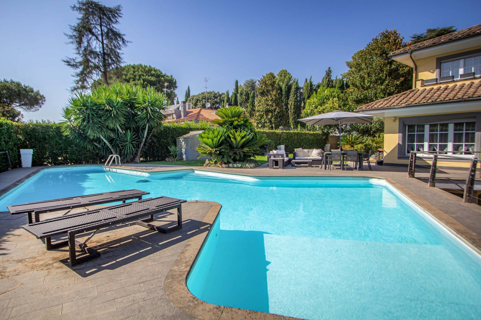 Nella splendida cornice di Via della Nocetta Villa Pamphili proponiamo in locazione unelegante villa con piscina circondata da un rigoglioso e curato giardino di 1.000 mq. La villa si sviluppa su tre livelli collegati tra loro con scale ed ascensore.